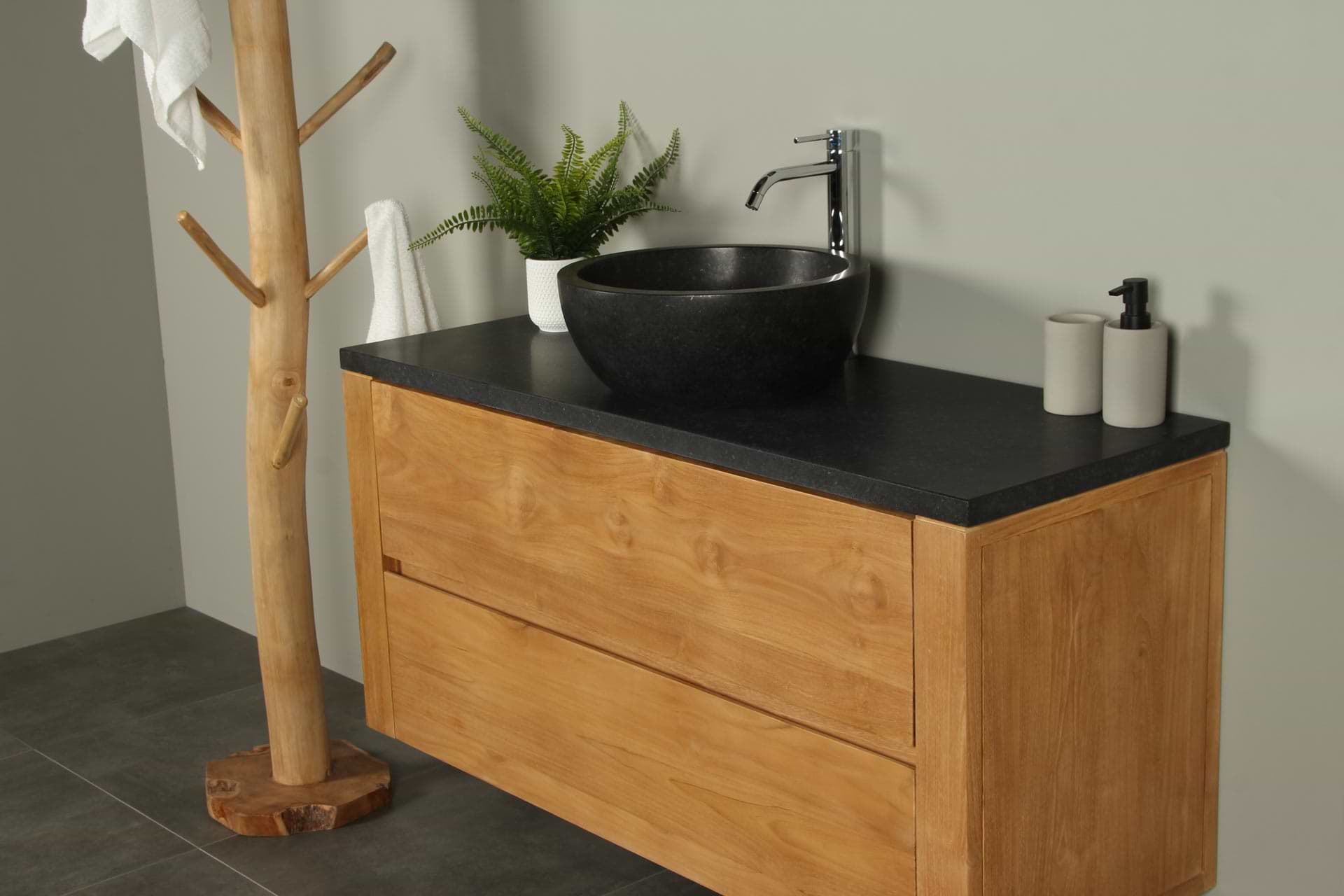 Houten badkamermeubel 120 cm basalt blad Batur