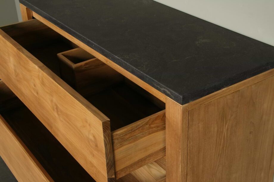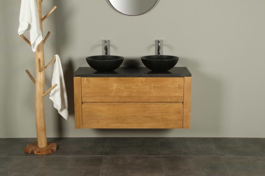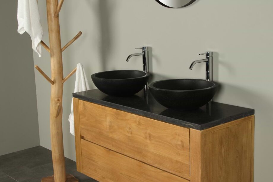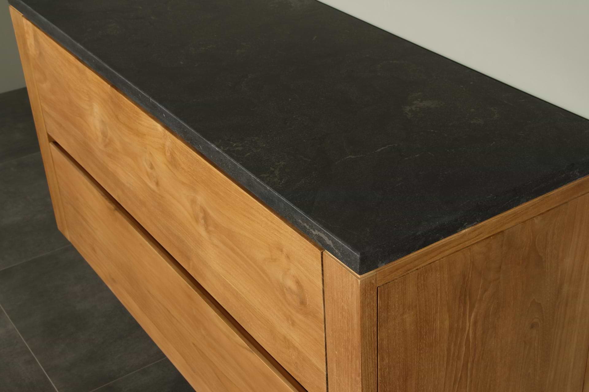 Houten badkamermeubel 120 cm hardstenen blad Batur