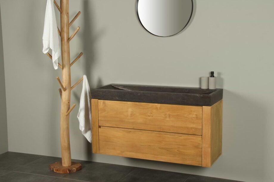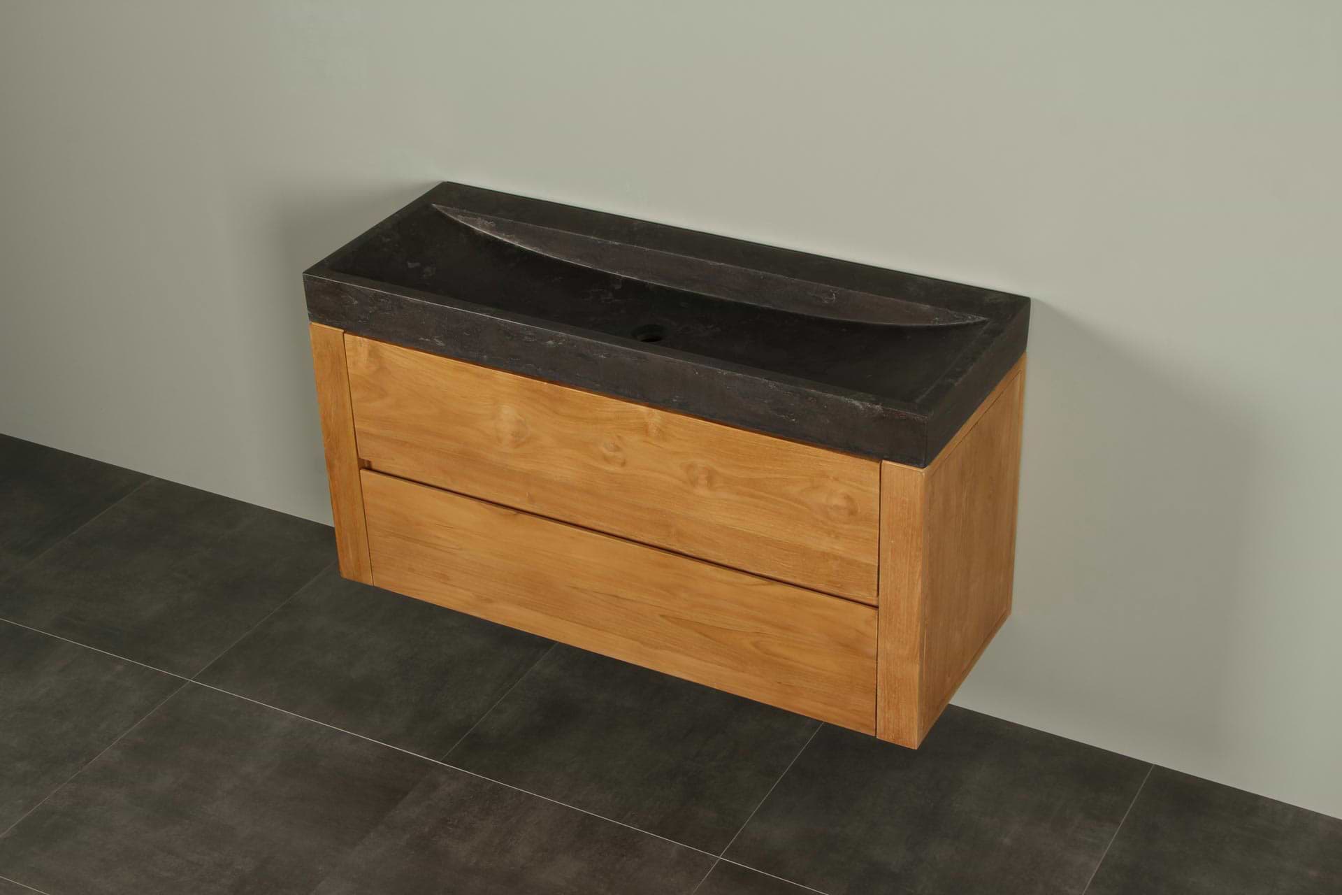 Teakhouten Badkamermeubel Ambang 120 cm Hardstenen Wasbak Zonder Kraangat