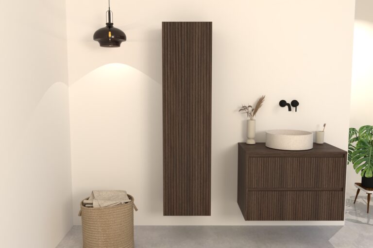 Donker Eiken Badkamermeubel Nila 80 cm – Ribbels met Softclose Lades