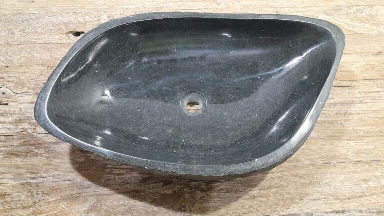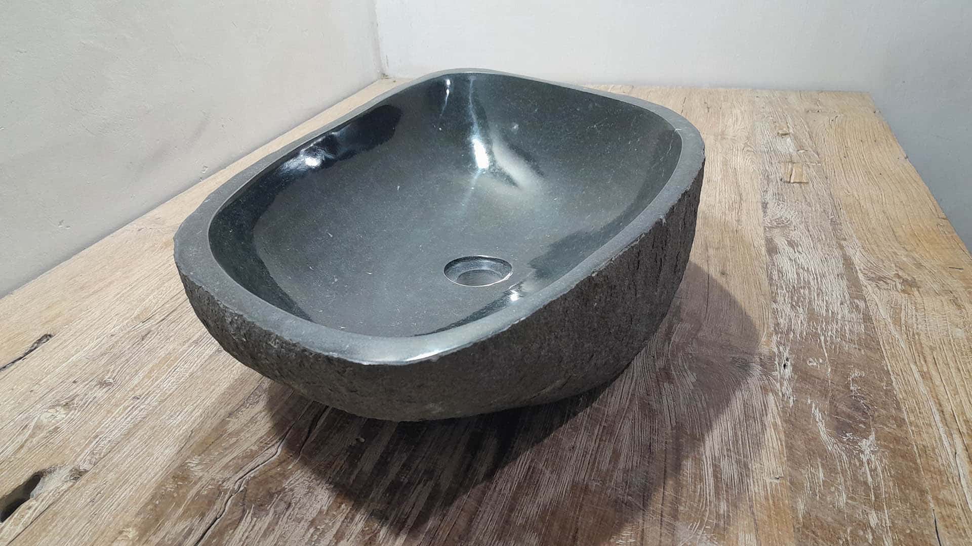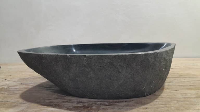 Deze grote rivierstenen waskom van is ideaal voor ruime badkamermeubels, zowel voor grote eenpersoons- als tweepersoons badkamermeubels. De binnenzijde van de riviersteen wasbak wordt glad gepolijst voor een snelle waterafvoer en eenvoudig onderhoud, de buitenzijde blijft ruw en onbewerkt waardoor de kom zijn robuuste en natuurlijke uitstraling behoudt.