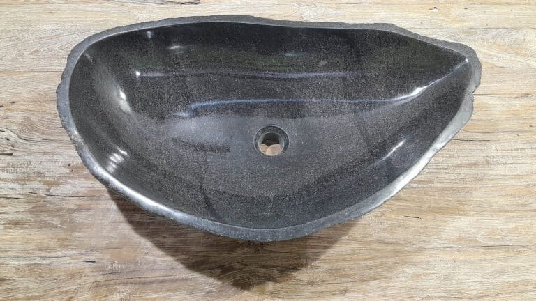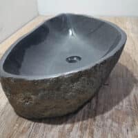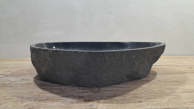 Deze grote rivierstenen waskom van is ideaal voor ruime badkamermeubels, zowel voor grote eenpersoons- als tweepersoons badkamermeubels. De binnenzijde van de riviersteen wasbak wordt glad gepolijst voor een snelle waterafvoer en eenvoudig onderhoud, de buitenzijde blijft ruw en onbewerkt waardoor de kom zijn robuuste en natuurlijke uitstraling behoudt.