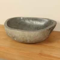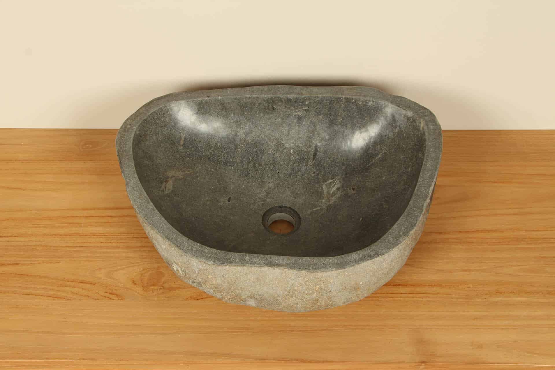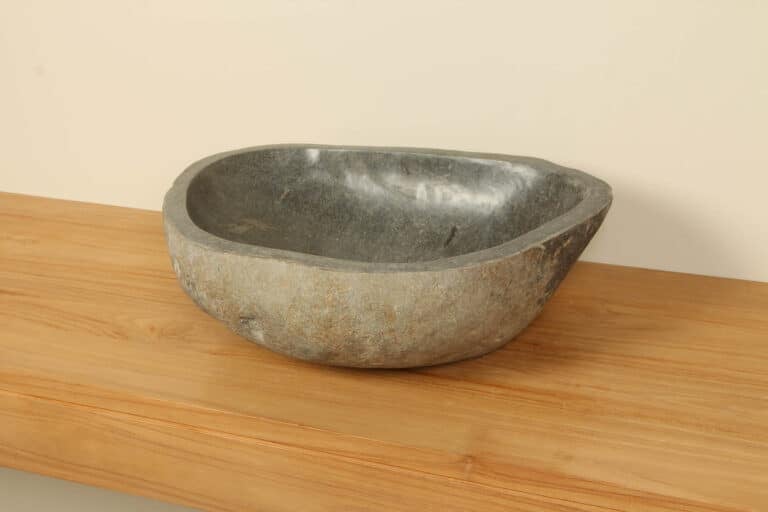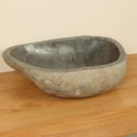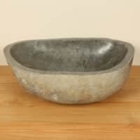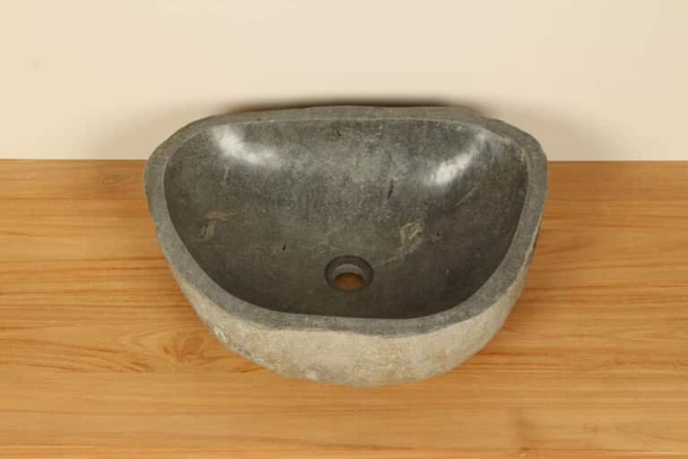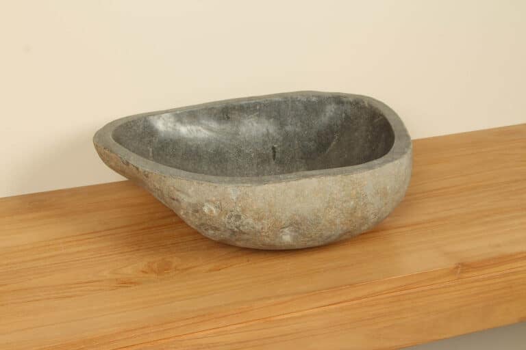 Middelgrote natuursteen waskom van Riviersteen. Deze rivierstenen waskom van is perfect voor kleine tot middelgrote badkamermeubels. Elke rivierstenen waskom wordt met de hand vervaardigd uit massief natuursteen. De binnenzijde van de kom wordt glad gepolijst voor een snelle waterafvoer en eenvoudig onderhoud, de buitenzijde blijft ruw en onbewerkt waardoor de kom zijn robuuste en natuurlijke karakter behoudt.