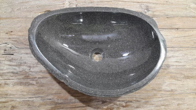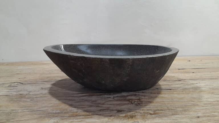 Middelgrote natuursteen waskom van Riviersteen. Deze rivierstenen waskom van is perfect voor kleine tot middelgrote badkamermeubels. Elke rivierstenen waskom wordt met de hand vervaardigd uit massief natuursteen. De binnenzijde van de kom wordt glad gepolijst voor een snelle waterafvoer en eenvoudig onderhoud, de buitenzijde blijft ruw en onbewerkt waardoor de kom zijn robuuste en natuurlijke karakter behoudt.