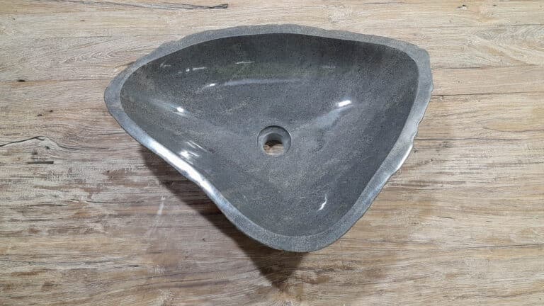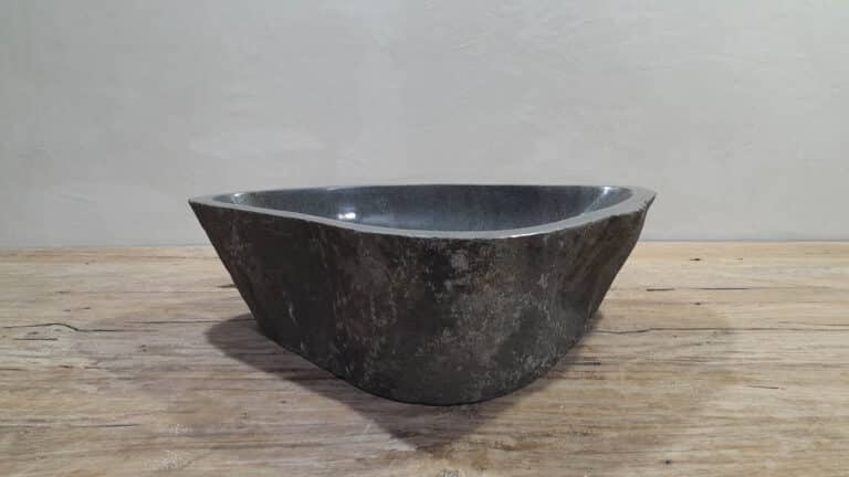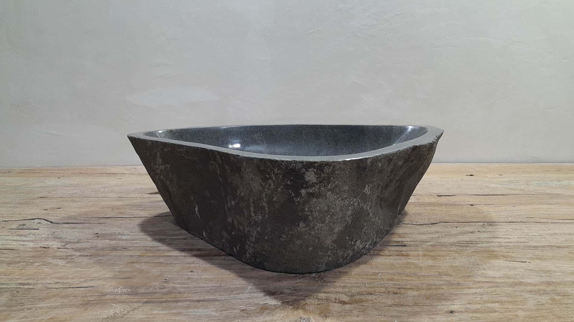 Middelgrote natuursteen waskom van Riviersteen. Deze rivierstenen waskom van is perfect voor kleine tot middelgrote badkamermeubels. Elke rivierstenen waskom wordt met de hand vervaardigd uit massief natuursteen. De binnenzijde van de kom wordt glad gepolijst voor een snelle waterafvoer en eenvoudig onderhoud, de buitenzijde blijft ruw en onbewerkt waardoor de kom zijn robuuste en natuurlijke karakter behoudt.