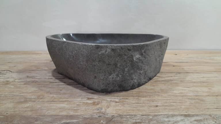 Middelgrote natuursteen waskom van Riviersteen. Deze rivierstenen waskom van is perfect voor kleine tot middelgrote badkamermeubels. Elke rivierstenen waskom wordt met de hand vervaardigd uit massief natuursteen. De binnenzijde van de kom wordt glad gepolijst voor een snelle waterafvoer en eenvoudig onderhoud, de buitenzijde blijft ruw en onbewerkt waardoor de kom zijn robuuste en natuurlijke karakter behoudt.