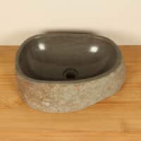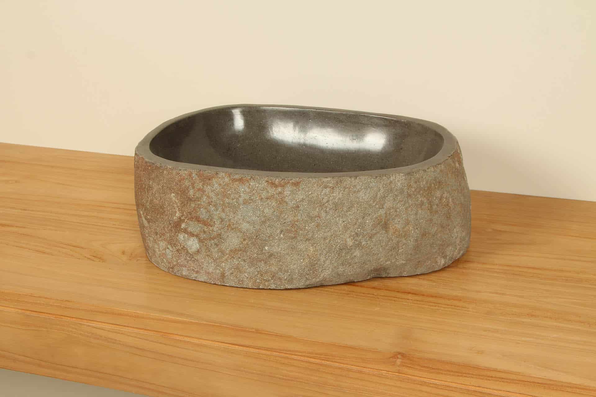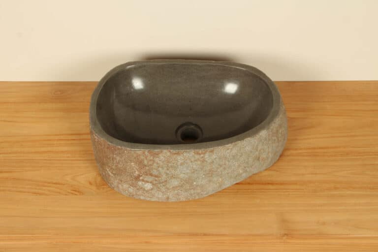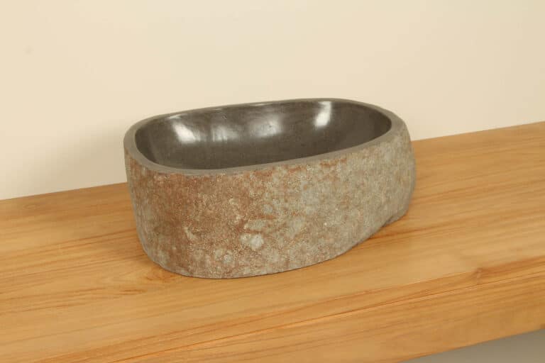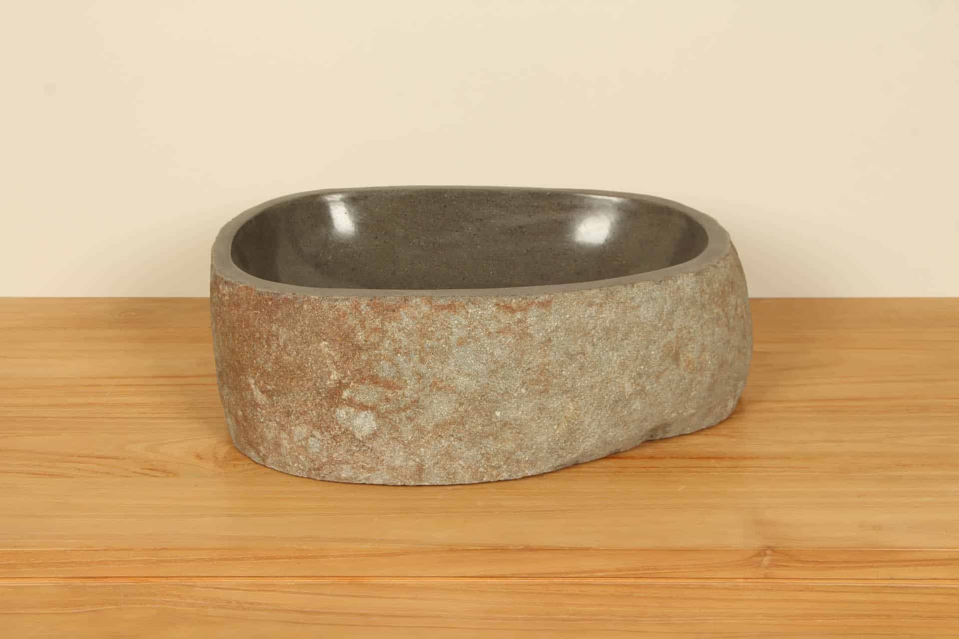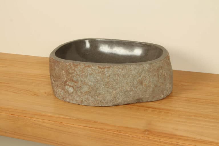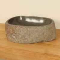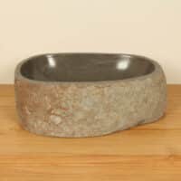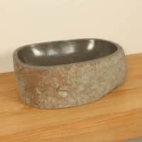 Middelgrote natuursteen waskom van Riviersteen. Deze rivierstenen waskom van is perfect voor kleine tot middelgrote badkamermeubels. Elke rivierstenen waskom wordt met de hand vervaardigd uit massief natuursteen. De binnenzijde van de kom wordt glad gepolijst voor een snelle waterafvoer en eenvoudig onderhoud, de buitenzijde blijft ruw en onbewerkt waardoor de kom zijn robuuste en natuurlijke karakter behoudt.
