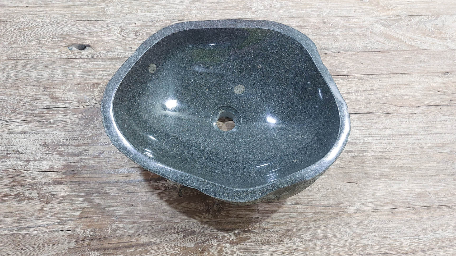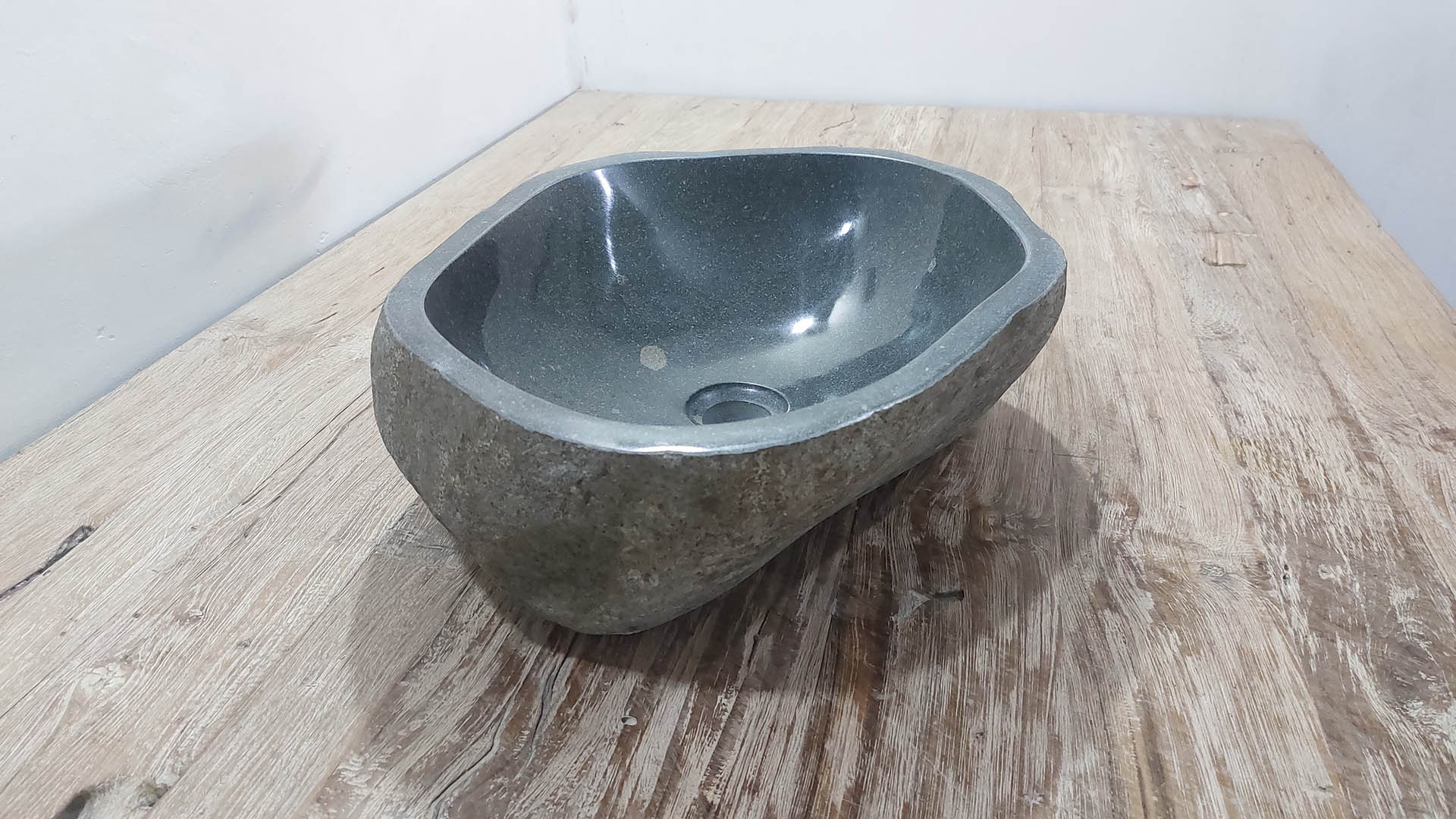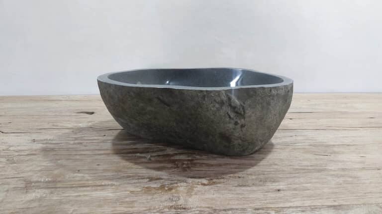 Middelgrote natuursteen waskom van Riviersteen. Deze rivierstenen waskom van is perfect voor kleine tot middelgrote badkamermeubels. Elke rivierstenen waskom wordt met de hand vervaardigd uit massief natuursteen. De binnenzijde van de kom wordt glad gepolijst voor een snelle waterafvoer en eenvoudig onderhoud, de buitenzijde blijft ruw en onbewerkt waardoor de kom zijn robuuste en natuurlijke karakter behoudt.