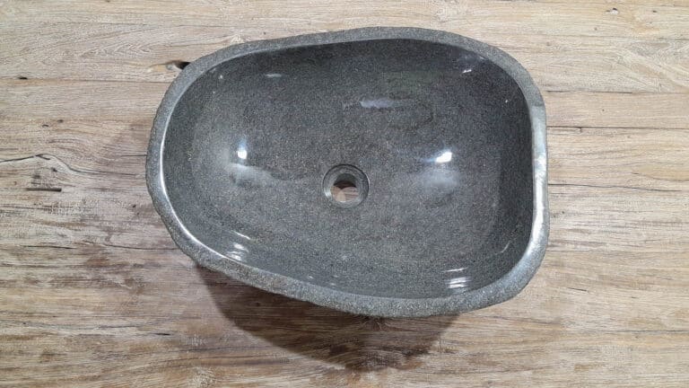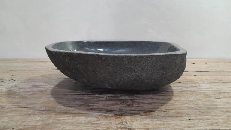 Middelgrote natuursteen waskom van Riviersteen. Deze rivierstenen waskom van is perfect voor kleine tot middelgrote badkamermeubels. Elke rivierstenen waskom wordt met de hand vervaardigd uit massief natuursteen. De binnenzijde van de kom wordt glad gepolijst voor een snelle waterafvoer en eenvoudig onderhoud, de buitenzijde blijft ruw en onbewerkt waardoor de kom zijn robuuste en natuurlijke karakter behoudt.
