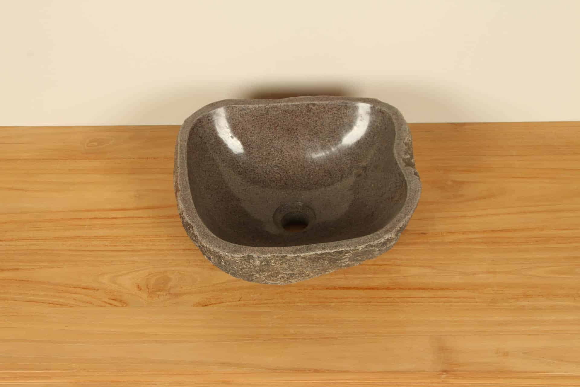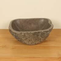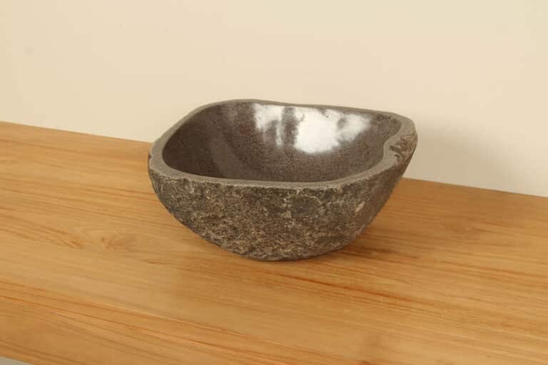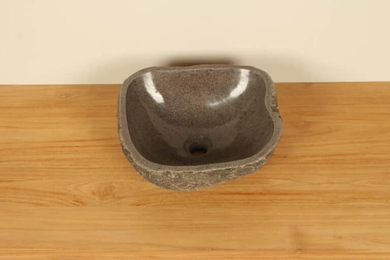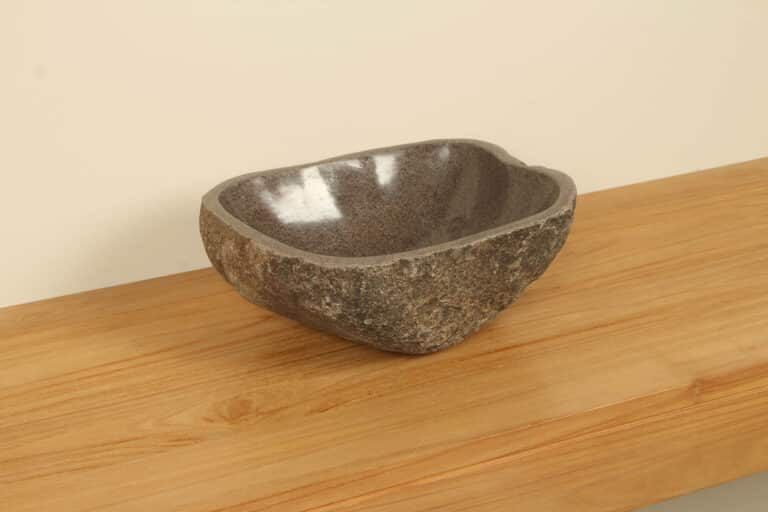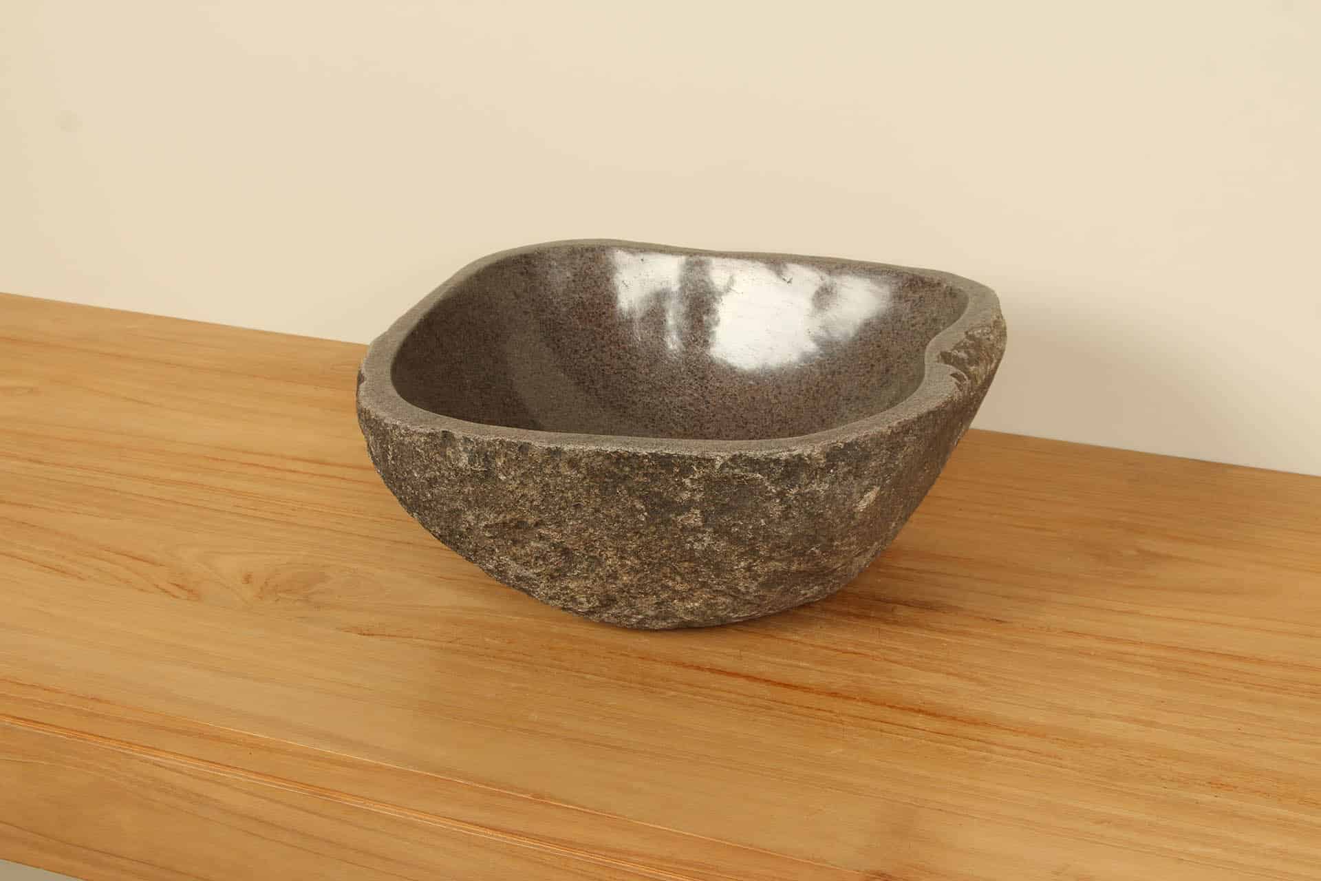 Middelgrote natuursteen waskom van Riviersteen. Deze rivierstenen waskom van is perfect voor kleine tot middelgrote badkamermeubels. Elke rivierstenen waskom wordt met de hand vervaardigd uit massief natuursteen. De binnenzijde van de kom wordt glad gepolijst voor een snelle waterafvoer en eenvoudig onderhoud, de buitenzijde blijft ruw en onbewerkt waardoor de kom zijn robuuste en natuurlijke karakter behoudt.