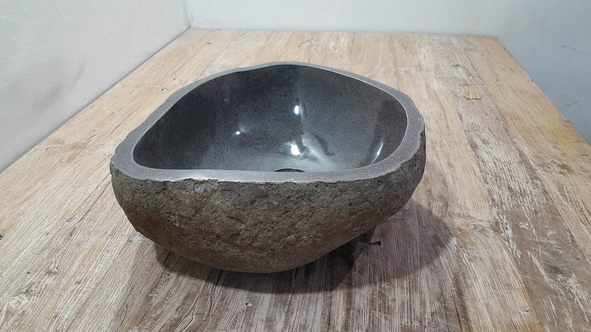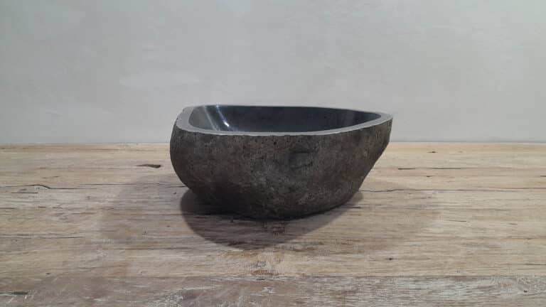 Middelgrote natuursteen waskom van Riviersteen. Deze rivierstenen waskom van is perfect voor kleine tot middelgrote badkamermeubels. Elke rivierstenen waskom wordt met de hand vervaardigd uit massief natuursteen. De binnenzijde van de kom wordt glad gepolijst voor een snelle waterafvoer en eenvoudig onderhoud, de buitenzijde blijft ruw en onbewerkt waardoor de kom zijn robuuste en natuurlijke karakter behoudt.