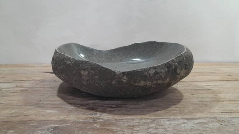 Middelgrote natuursteen waskom van Riviersteen. Deze rivierstenen waskom van is perfect voor kleine tot middelgrote badkamermeubels. Elke rivierstenen waskom wordt met de hand vervaardigd uit massief natuursteen. De binnenzijde van de kom wordt glad gepolijst voor een snelle waterafvoer en eenvoudig onderhoud, de buitenzijde blijft ruw en onbewerkt waardoor de kom zijn robuuste en natuurlijke karakter behoudt.