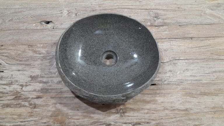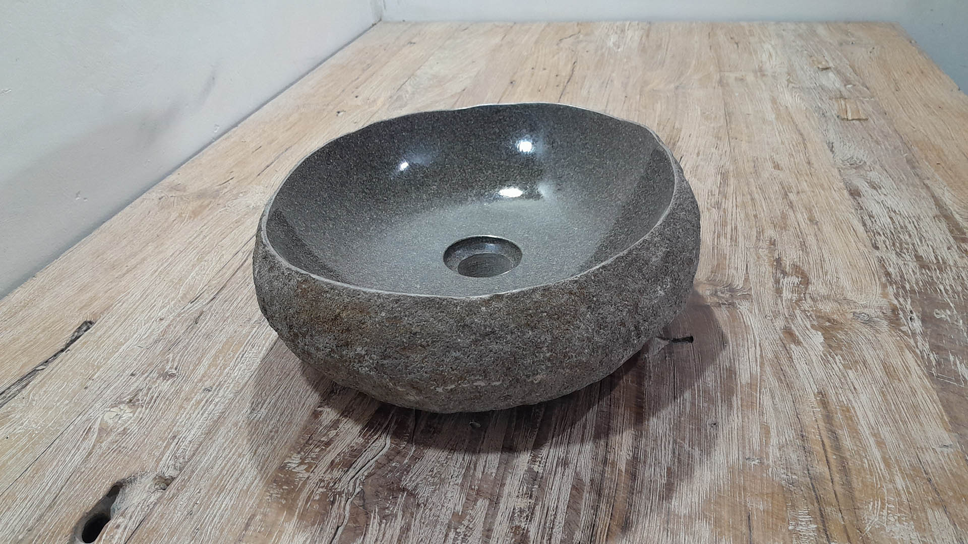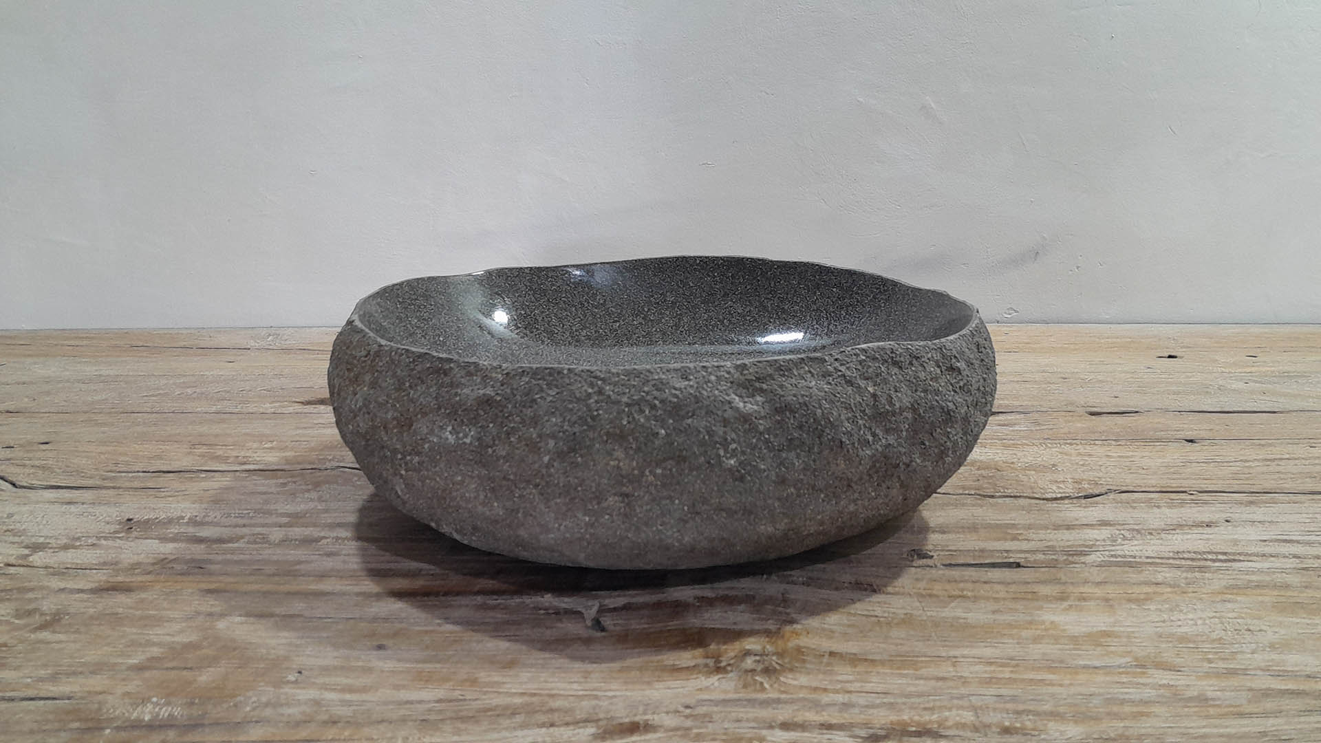 Middelgrote natuursteen waskom van Riviersteen. Deze rivierstenen waskom van is perfect voor kleine tot middelgrote badkamermeubels. Elke rivierstenen waskom wordt met de hand vervaardigd uit massief natuursteen. De binnenzijde van de kom wordt glad gepolijst voor een snelle waterafvoer en eenvoudig onderhoud, de buitenzijde blijft ruw en onbewerkt waardoor de kom zijn robuuste en natuurlijke karakter behoudt.