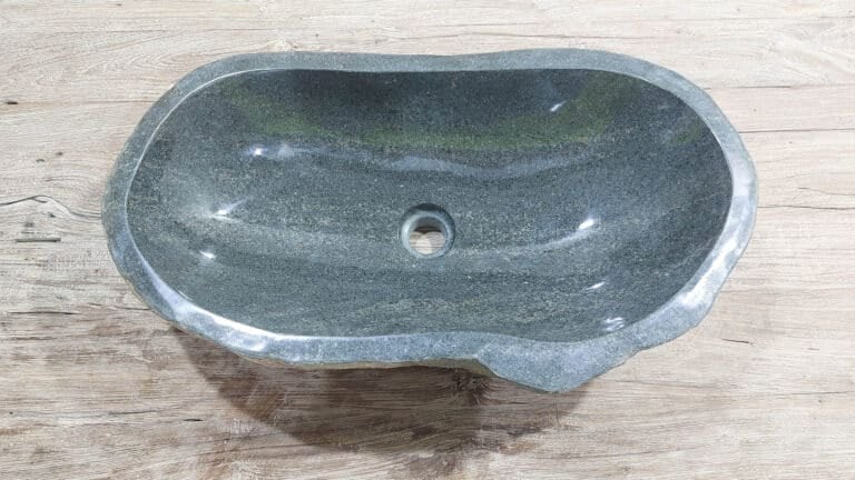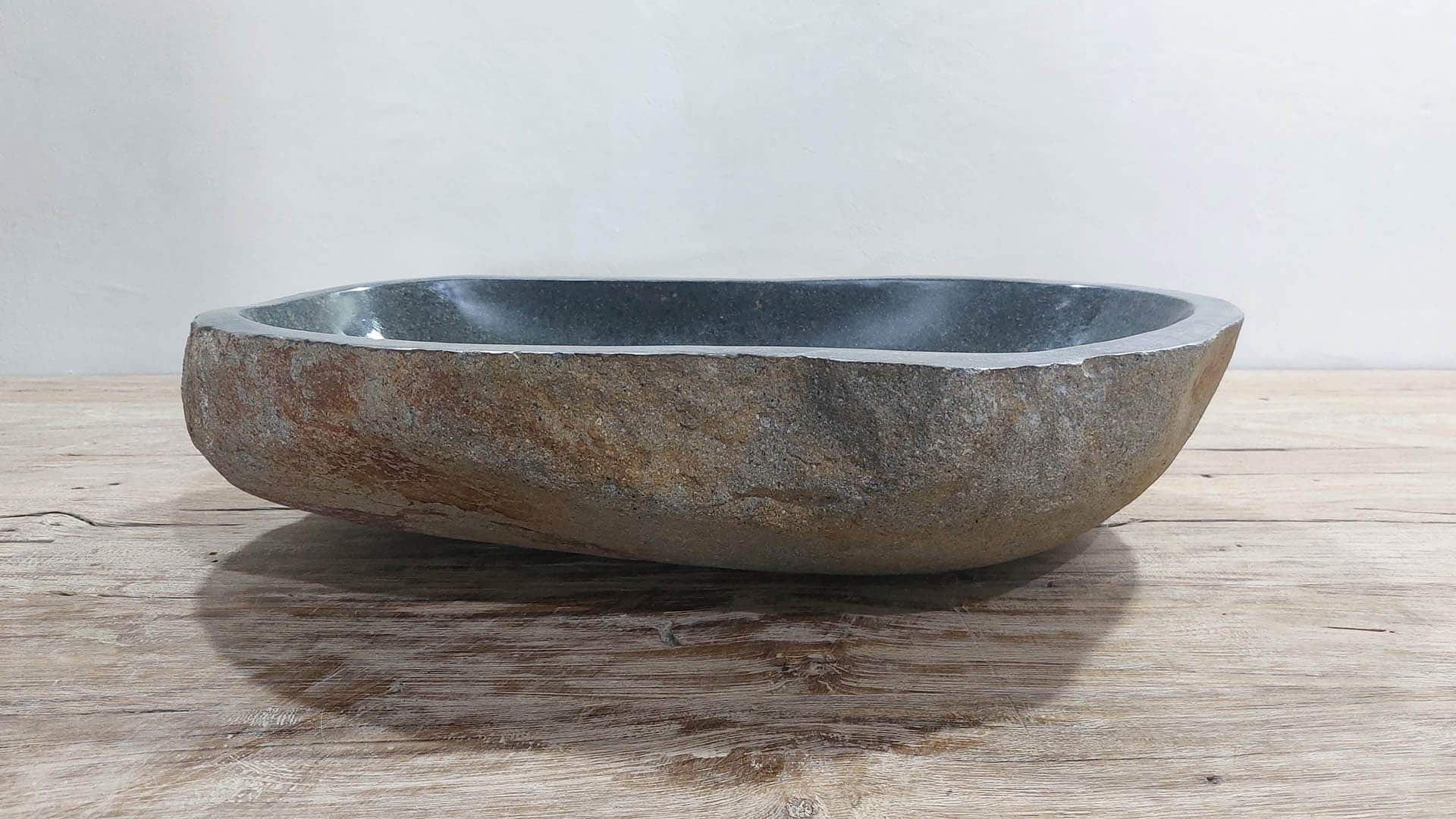 Middelgrote natuursteen waskom van Riviersteen. Deze rivierstenen waskom van is perfect voor kleine tot middelgrote badkamermeubels. Elke rivierstenen waskom wordt met de hand vervaardigd uit massief natuursteen. De binnenzijde van de kom wordt glad gepolijst voor een snelle waterafvoer en eenvoudig onderhoud, de buitenzijde blijft ruw en onbewerkt waardoor de kom zijn robuuste en natuurlijke karakter behoudt.