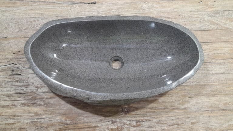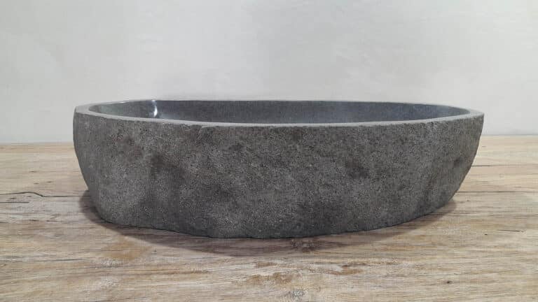 Middelgrote natuursteen waskom van Riviersteen. Deze rivierstenen waskom van is perfect voor kleine tot middelgrote badkamermeubels. Elke rivierstenen waskom wordt met de hand vervaardigd uit massief natuursteen. De binnenzijde van de kom wordt glad gepolijst voor een snelle waterafvoer en eenvoudig onderhoud, de buitenzijde blijft ruw en onbewerkt waardoor de kom zijn robuuste en natuurlijke karakter behoudt.