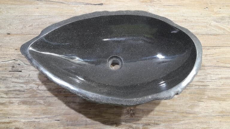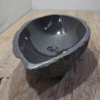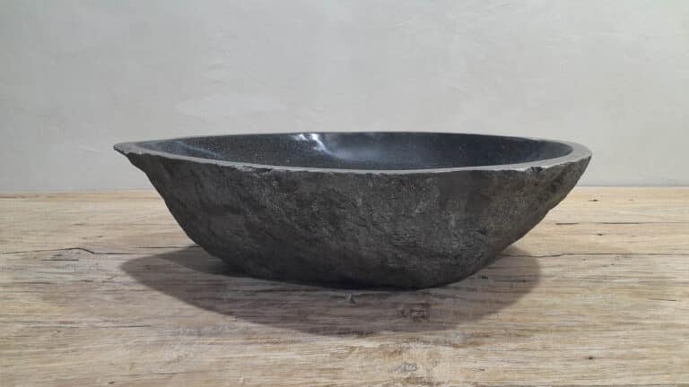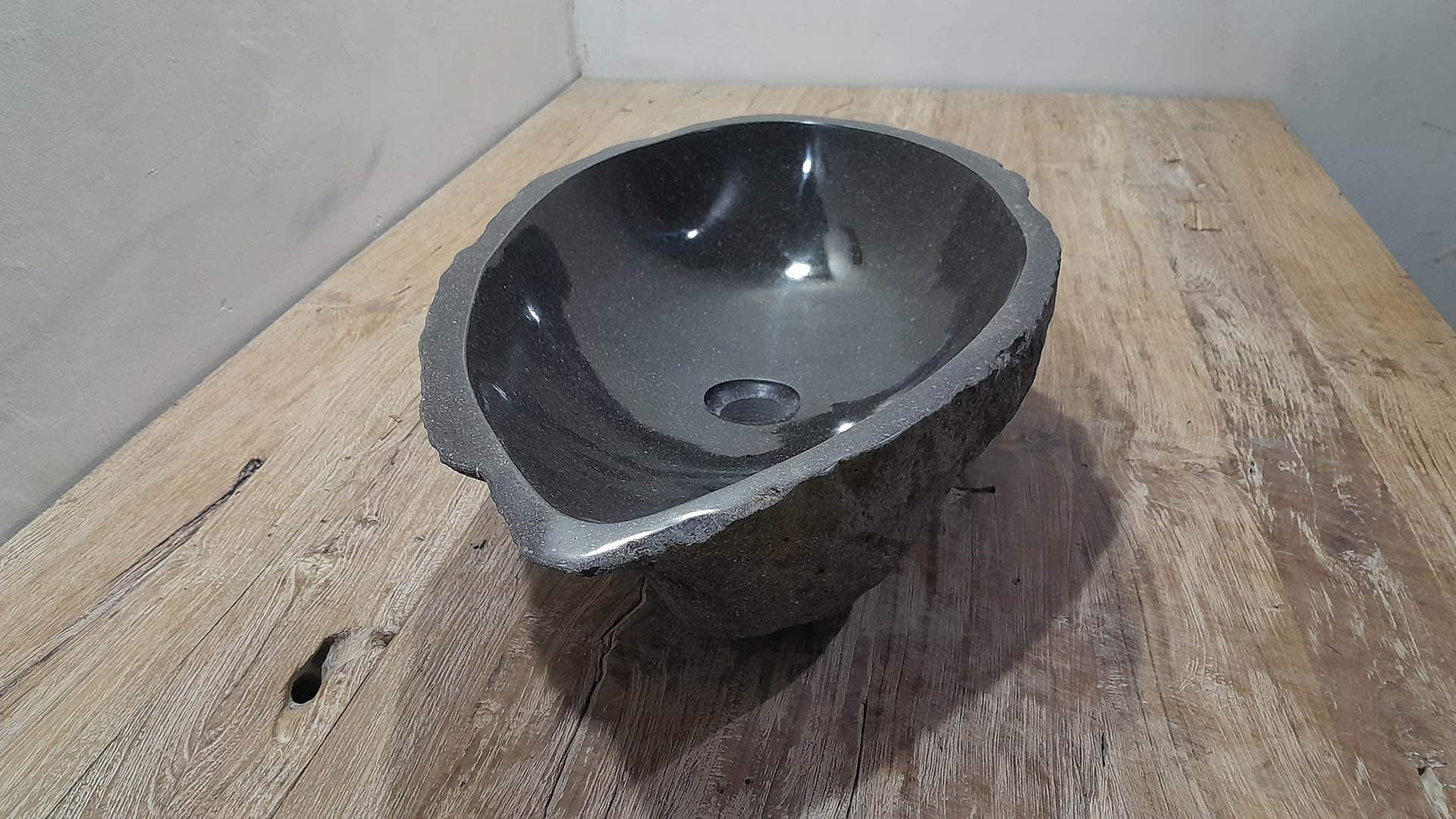Middelgrote natuursteen waskom van Riviersteen. Deze rivierstenen waskom van is perfect voor kleine tot middelgrote badkamermeubels. Elke rivierstenen waskom wordt met de hand vervaardigd uit massief natuursteen. De binnenzijde van de kom wordt glad gepolijst voor een snelle waterafvoer en eenvoudig onderhoud, de buitenzijde blijft ruw en onbewerkt waardoor de kom zijn robuuste en natuurlijke karakter behoudt.
