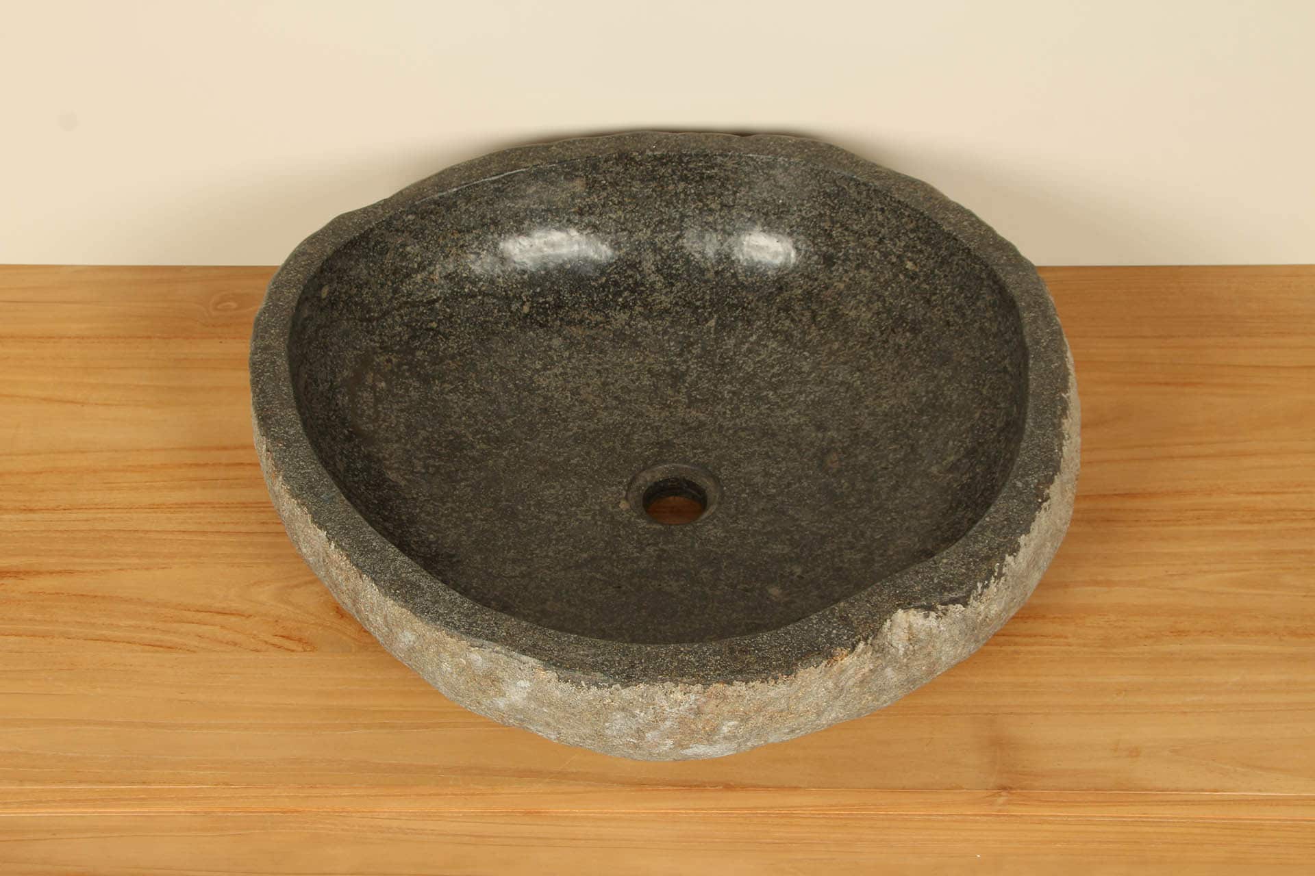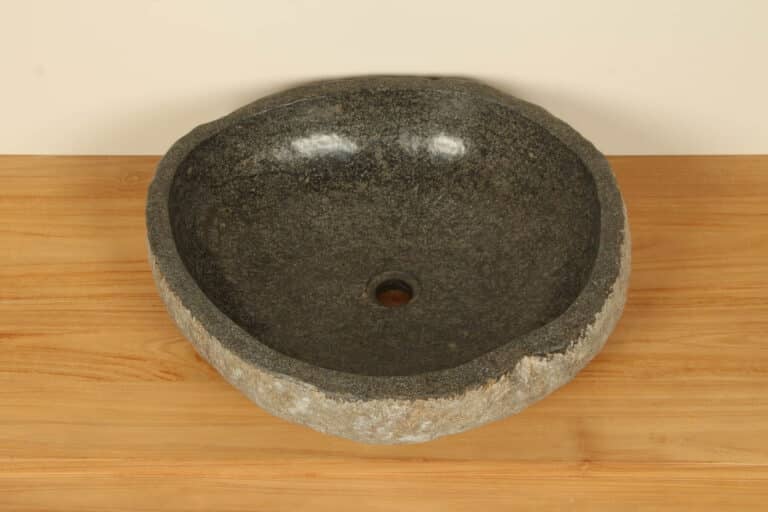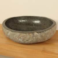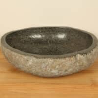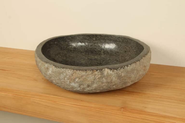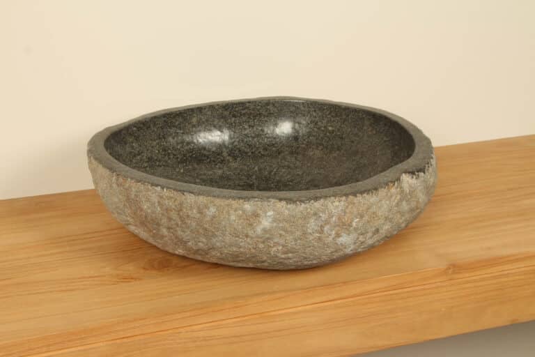 Middelgrote natuursteen waskom van Riviersteen. Deze rivierstenen waskom van is perfect voor kleine tot middelgrote badkamermeubels. Elke rivierstenen waskom wordt met de hand vervaardigd uit massief natuursteen. De binnenzijde van de kom wordt glad gepolijst voor een snelle waterafvoer en eenvoudig onderhoud, de buitenzijde blijft ruw en onbewerkt waardoor de kom zijn robuuste en natuurlijke karakter behoudt.