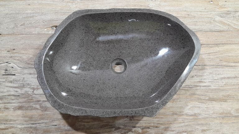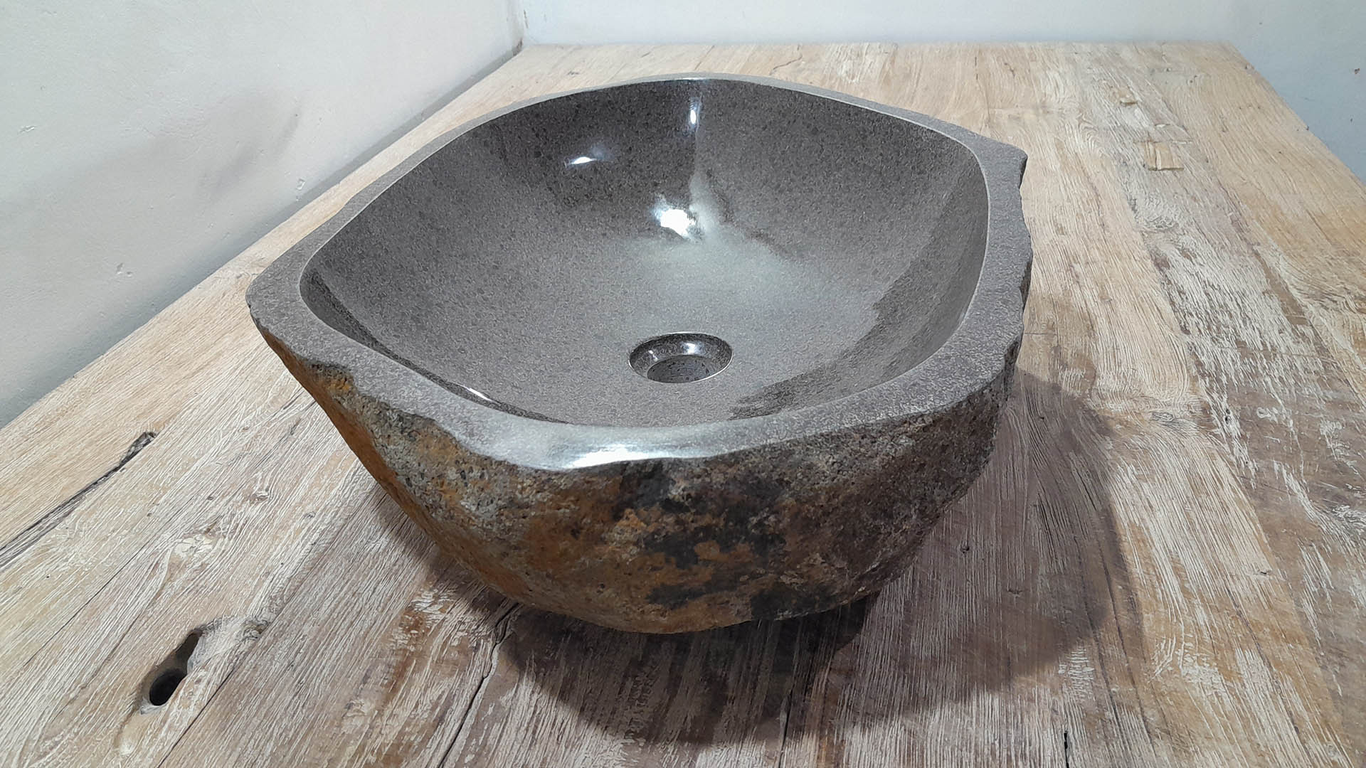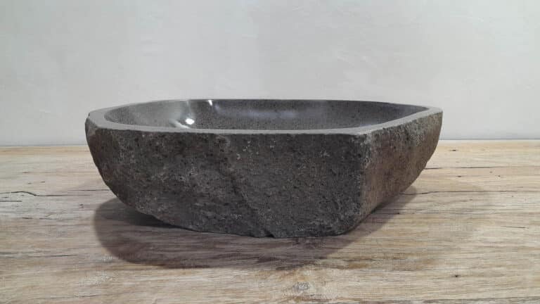 Middelgrote natuursteen waskom van Riviersteen. Deze rivierstenen waskom van is perfect voor kleine tot middelgrote badkamermeubels. Elke rivierstenen waskom wordt met de hand vervaardigd uit massief natuursteen. De binnenzijde van de kom wordt glad gepolijst voor een snelle waterafvoer en eenvoudig onderhoud, de buitenzijde blijft ruw en onbewerkt waardoor de kom zijn robuuste en natuurlijke karakter behoudt.
