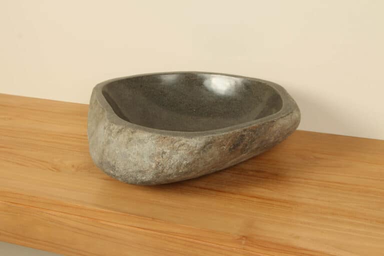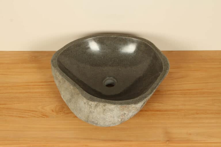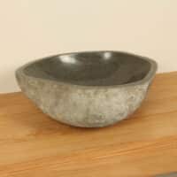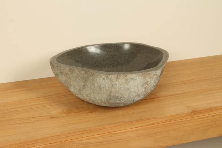 Middelgrote natuursteen waskom van Riviersteen. Deze rivierstenen waskom van is perfect voor kleine tot middelgrote badkamermeubels. Elke rivierstenen waskom wordt met de hand vervaardigd uit massief natuursteen. De binnenzijde van de kom wordt glad gepolijst voor een snelle waterafvoer en eenvoudig onderhoud, de buitenzijde blijft ruw en onbewerkt waardoor de kom zijn robuuste en natuurlijke karakter behoudt.