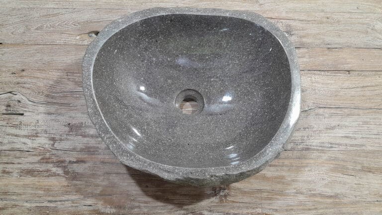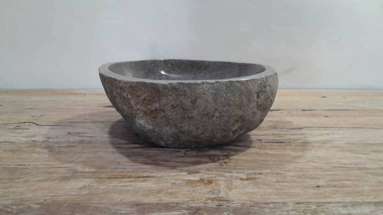 Middelgrote natuursteen waskom van Riviersteen. Deze rivierstenen waskom van is perfect voor kleine tot middelgrote badkamermeubels. Elke rivierstenen waskom wordt met de hand vervaardigd uit massief natuursteen. De binnenzijde van de kom wordt glad gepolijst voor een snelle waterafvoer en eenvoudig onderhoud, de buitenzijde blijft ruw en onbewerkt waardoor de kom zijn robuuste en natuurlijke karakter behoudt.