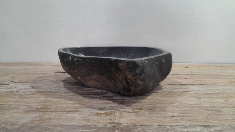 Middelgrote natuursteen waskom van Riviersteen. Deze rivierstenen waskom van is perfect voor kleine tot middelgrote badkamermeubels. Elke rivierstenen waskom wordt met de hand vervaardigd uit massief natuursteen. De binnenzijde van de kom wordt glad gepolijst voor een snelle waterafvoer en eenvoudig onderhoud, de buitenzijde blijft ruw en onbewerkt waardoor de kom zijn robuuste en natuurlijke karakter behoudt.