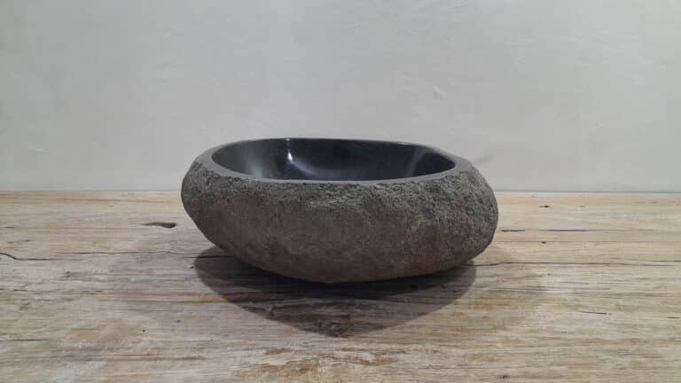 Middelgrote natuursteen waskom van Riviersteen. Deze rivierstenen waskom van is perfect voor kleine tot middelgrote badkamermeubels. Elke rivierstenen waskom wordt met de hand vervaardigd uit massief natuursteen. De binnenzijde van de kom wordt glad gepolijst voor een snelle waterafvoer en eenvoudig onderhoud, de buitenzijde blijft ruw en onbewerkt waardoor de kom zijn robuuste en natuurlijke karakter behoudt.
