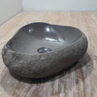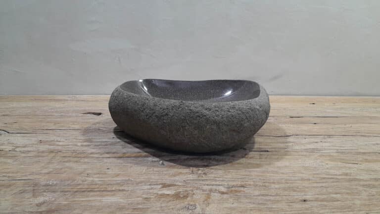 Middelgrote natuursteen waskom van Riviersteen. Deze rivierstenen waskom van is perfect voor kleine tot middelgrote badkamermeubels. Elke rivierstenen waskom wordt met de hand vervaardigd uit massief natuursteen. De binnenzijde van de kom wordt glad gepolijst voor een snelle waterafvoer en eenvoudig onderhoud, de buitenzijde blijft ruw en onbewerkt waardoor de kom zijn robuuste en natuurlijke karakter behoudt.