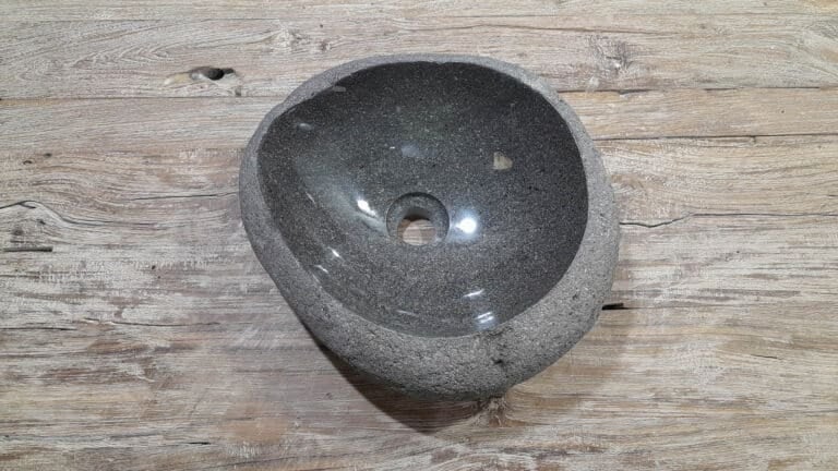 Middelgrote natuursteen waskom van Riviersteen. Deze rivierstenen waskom van is perfect voor kleine tot middelgrote badkamermeubels. Elke rivierstenen waskom wordt met de hand vervaardigd uit massief natuursteen. De binnenzijde van de kom wordt glad gepolijst voor een snelle waterafvoer en eenvoudig onderhoud, de buitenzijde blijft ruw en onbewerkt waardoor de kom zijn robuuste en natuurlijke karakter behoudt.