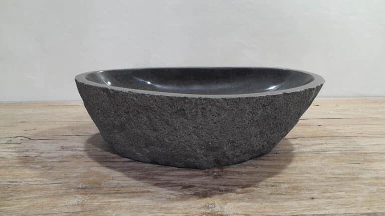 Middelgrote natuursteen waskom van Riviersteen. Deze rivierstenen waskom van is perfect voor kleine tot middelgrote badkamermeubels. Elke rivierstenen waskom wordt met de hand vervaardigd uit massief natuursteen. De binnenzijde van de kom wordt glad gepolijst voor een snelle waterafvoer en eenvoudig onderhoud, de buitenzijde blijft ruw en onbewerkt waardoor de kom zijn robuuste en natuurlijke karakter behoudt.