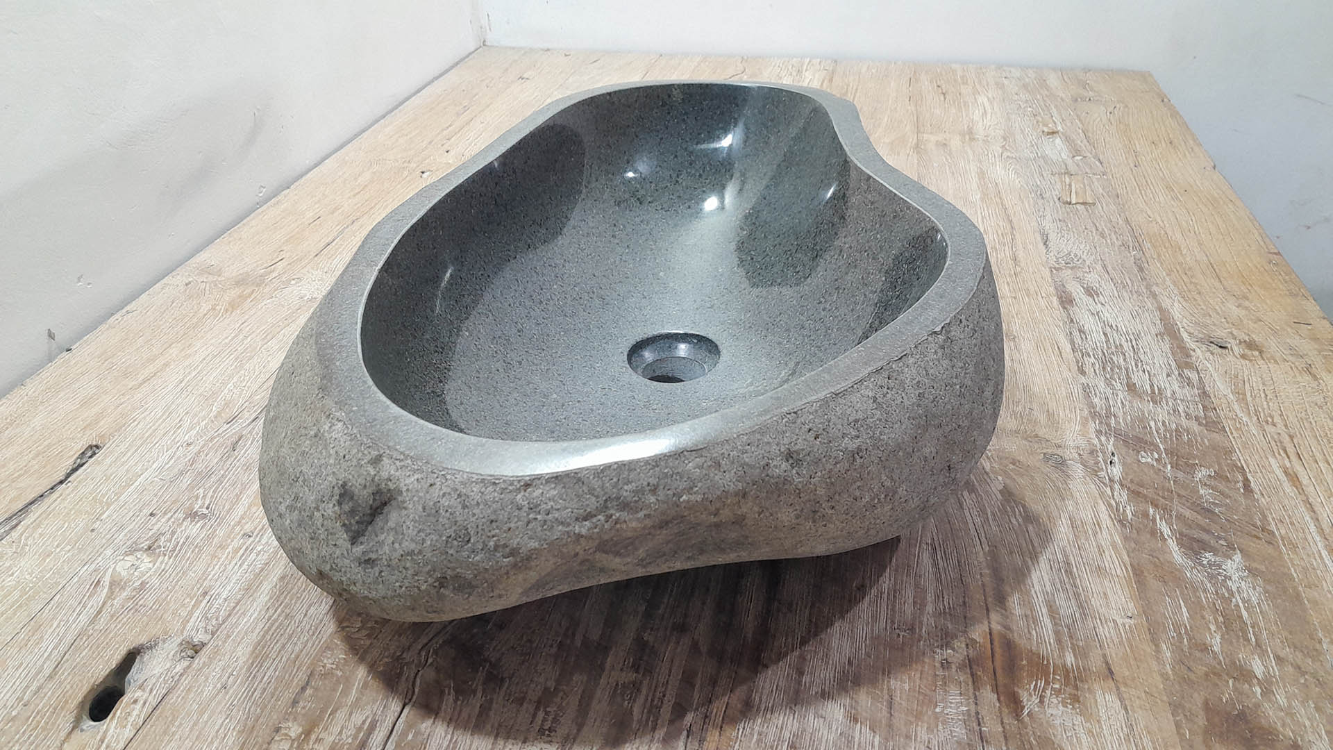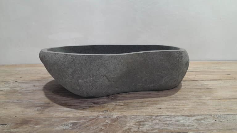 Middelgrote natuursteen waskom van Riviersteen. Deze rivierstenen waskom van is perfect voor kleine tot middelgrote badkamermeubels. Elke rivierstenen waskom wordt met de hand vervaardigd uit massief natuursteen. De binnenzijde van de kom wordt glad gepolijst voor een snelle waterafvoer en eenvoudig onderhoud, de buitenzijde blijft ruw en onbewerkt waardoor de kom zijn robuuste en natuurlijke karakter behoudt.