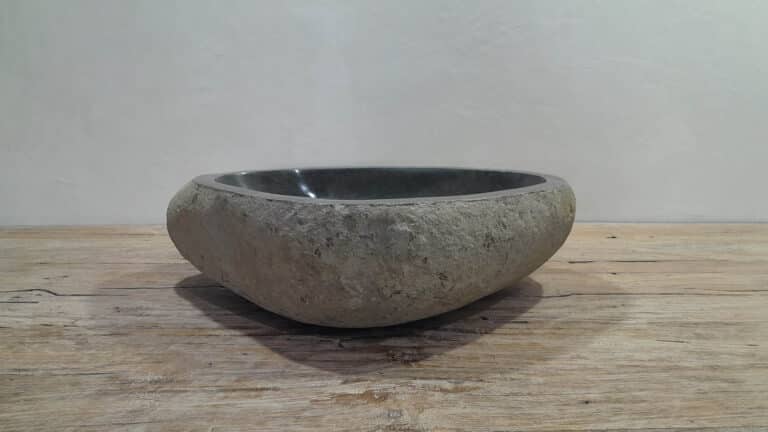 Middelgrote natuursteen waskom van Riviersteen. Deze rivierstenen waskom van is perfect voor kleine tot middelgrote badkamermeubels. Elke rivierstenen waskom wordt met de hand vervaardigd uit massief natuursteen. De binnenzijde van de kom wordt glad gepolijst voor een snelle waterafvoer en eenvoudig onderhoud, de buitenzijde blijft ruw en onbewerkt waardoor de kom zijn robuuste en natuurlijke karakter behoudt.