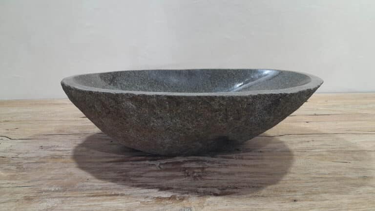 Middelgrote natuursteen waskom van Riviersteen. Deze rivierstenen waskom van is perfect voor kleine tot middelgrote badkamermeubels. Elke rivierstenen waskom wordt met de hand vervaardigd uit massief natuursteen. De binnenzijde van de kom wordt glad gepolijst voor een snelle waterafvoer en eenvoudig onderhoud, de buitenzijde blijft ruw en onbewerkt waardoor de kom zijn robuuste en natuurlijke karakter behoudt.