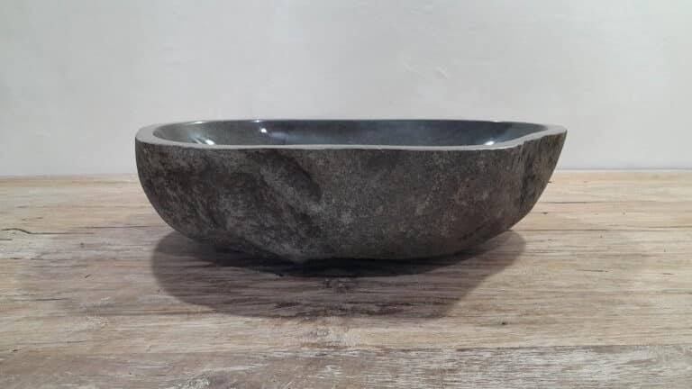Middelgrote natuursteen waskom van Riviersteen. Deze rivierstenen waskom van is perfect voor kleine tot middelgrote badkamermeubels. Elke rivierstenen waskom wordt met de hand vervaardigd uit massief natuursteen. De binnenzijde van de kom wordt glad gepolijst voor een snelle waterafvoer en eenvoudig onderhoud, de buitenzijde blijft ruw en onbewerkt waardoor de kom zijn robuuste en natuurlijke karakter behoudt.