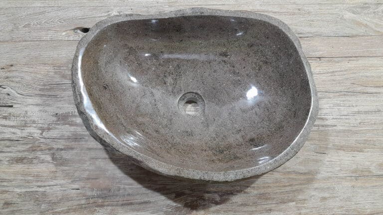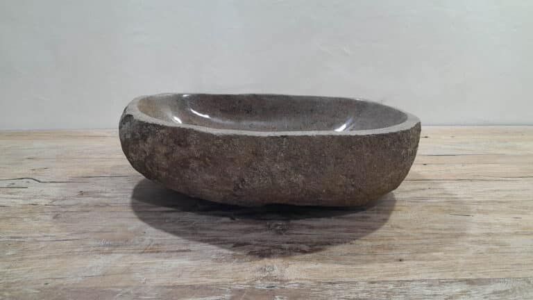 Middelgrote natuursteen waskom van Riviersteen. Deze rivierstenen waskom van is perfect voor kleine tot middelgrote badkamermeubels. Elke rivierstenen waskom wordt met de hand vervaardigd uit massief natuursteen. De binnenzijde van de kom wordt glad gepolijst voor een snelle waterafvoer en eenvoudig onderhoud, de buitenzijde blijft ruw en onbewerkt waardoor de kom zijn robuuste en natuurlijke karakter behoudt.