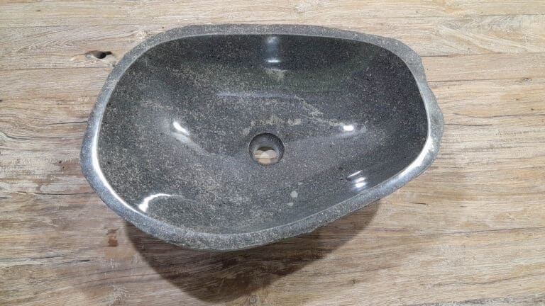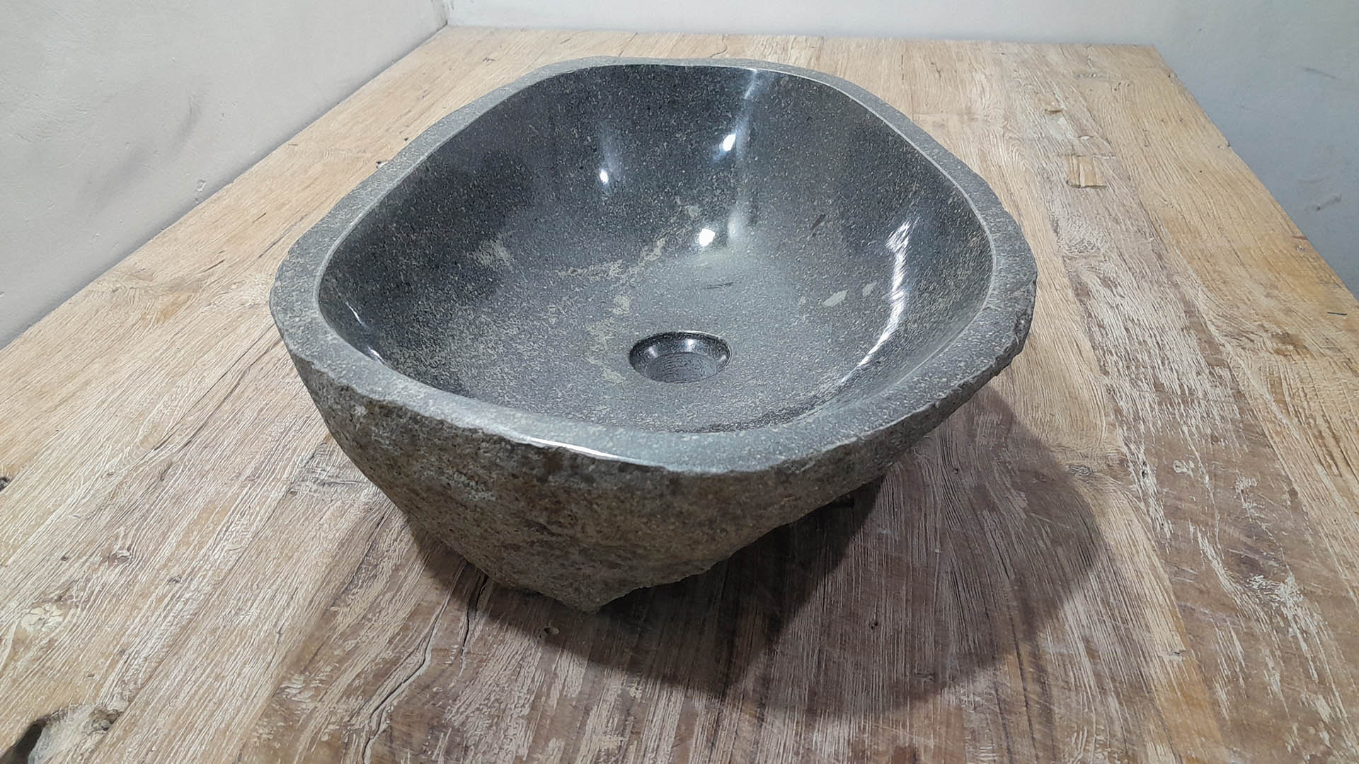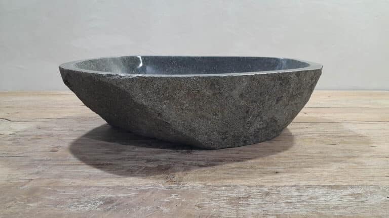 Middelgrote natuursteen waskom van Riviersteen. Deze rivierstenen waskom van is perfect voor kleine tot middelgrote badkamermeubels. Elke rivierstenen waskom wordt met de hand vervaardigd uit massief natuursteen. De binnenzijde van de kom wordt glad gepolijst voor een snelle waterafvoer en eenvoudig onderhoud, de buitenzijde blijft ruw en onbewerkt waardoor de kom zijn robuuste en natuurlijke karakter behoudt.