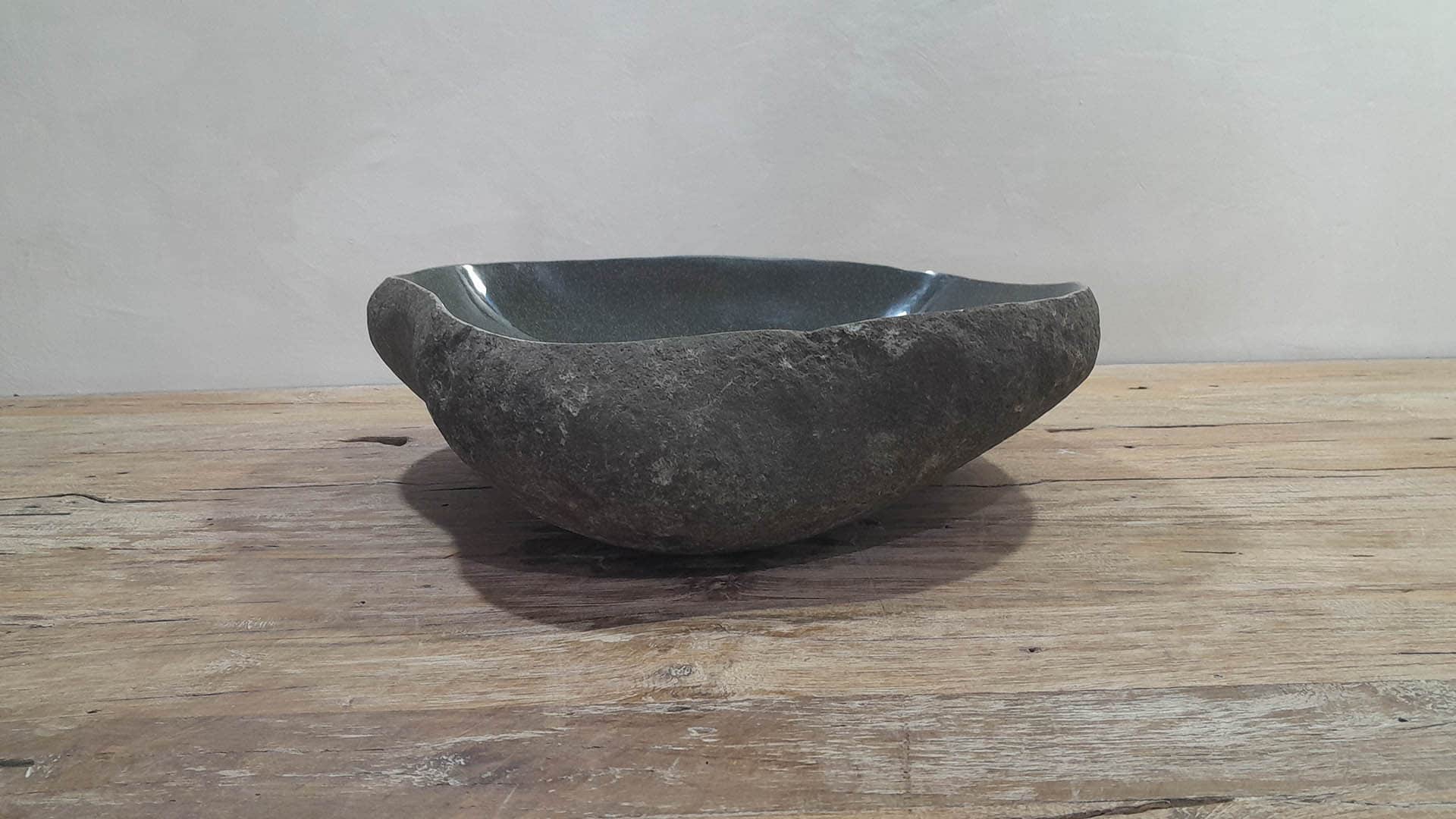 Middelgrote natuursteen waskom van Riviersteen. Deze rivierstenen waskom van is perfect voor kleine tot middelgrote badkamermeubels. Elke rivierstenen waskom wordt met de hand vervaardigd uit massief natuursteen. De binnenzijde van de kom wordt glad gepolijst voor een snelle waterafvoer en eenvoudig onderhoud, de buitenzijde blijft ruw en onbewerkt waardoor de kom zijn robuuste en natuurlijke karakter behoudt.