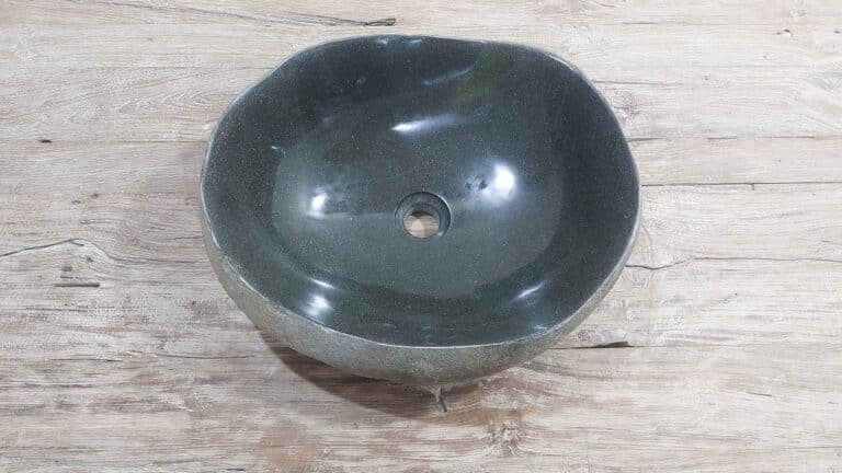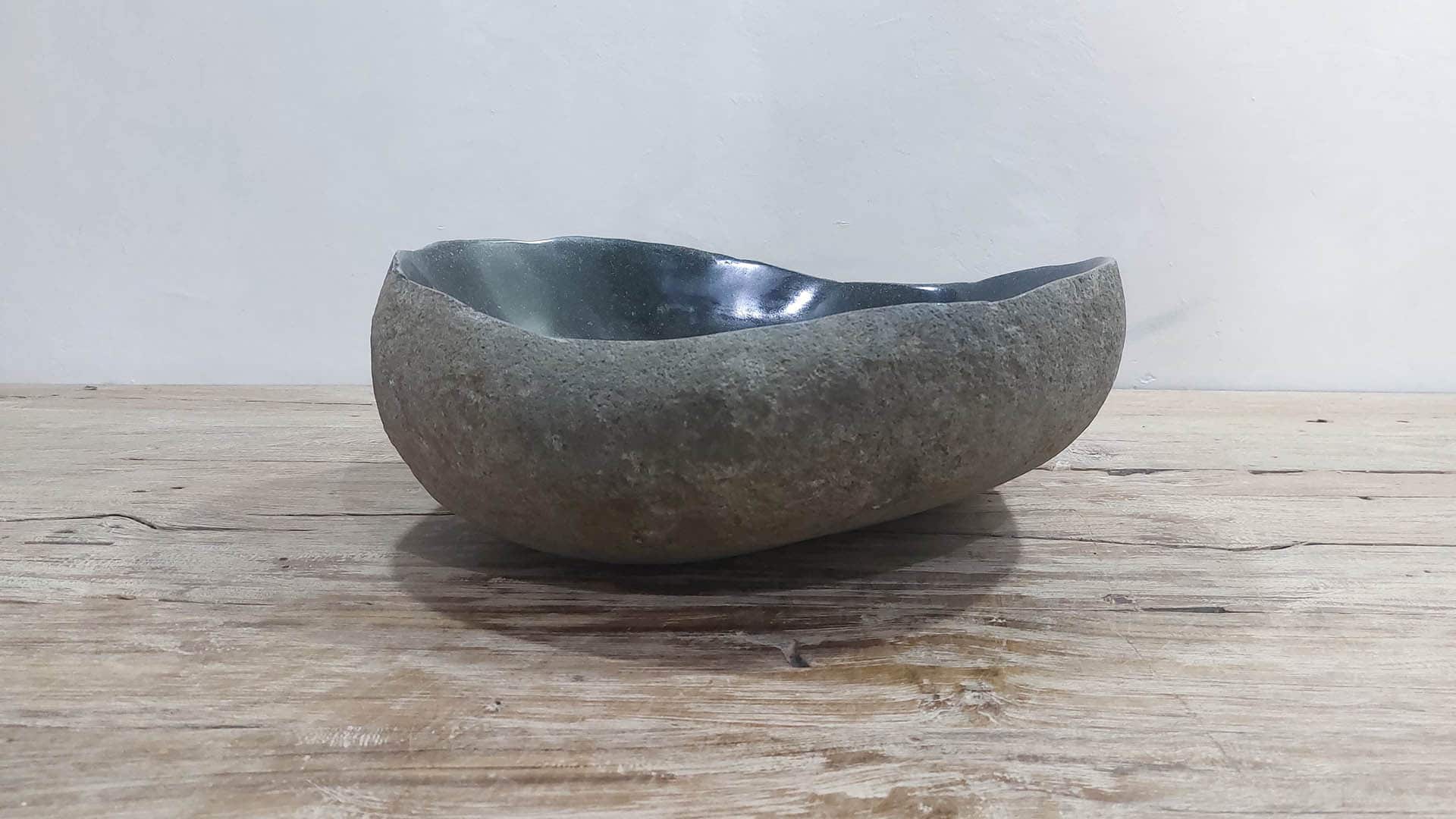 Middelgrote natuursteen waskom van Riviersteen. Deze rivierstenen waskom van is perfect voor kleine tot middelgrote badkamermeubels. Elke rivierstenen waskom wordt met de hand vervaardigd uit massief natuursteen. De binnenzijde van de kom wordt glad gepolijst voor een snelle waterafvoer en eenvoudig onderhoud, de buitenzijde blijft ruw en onbewerkt waardoor de kom zijn robuuste en natuurlijke karakter behoudt.