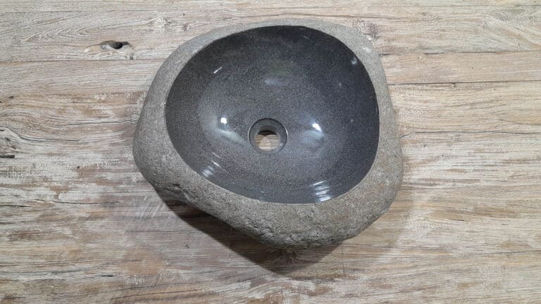 Middelgrote natuursteen waskom van Riviersteen. Deze rivierstenen waskom van is perfect voor kleine tot middelgrote badkamermeubels. Elke rivierstenen waskom wordt met de hand vervaardigd uit massief natuursteen. De binnenzijde van de kom wordt glad gepolijst voor een snelle waterafvoer en eenvoudig onderhoud, de buitenzijde blijft ruw en onbewerkt waardoor de kom zijn robuuste en natuurlijke karakter behoudt.