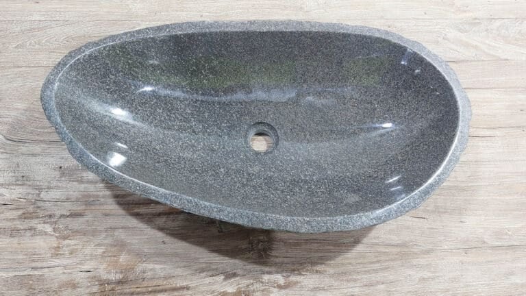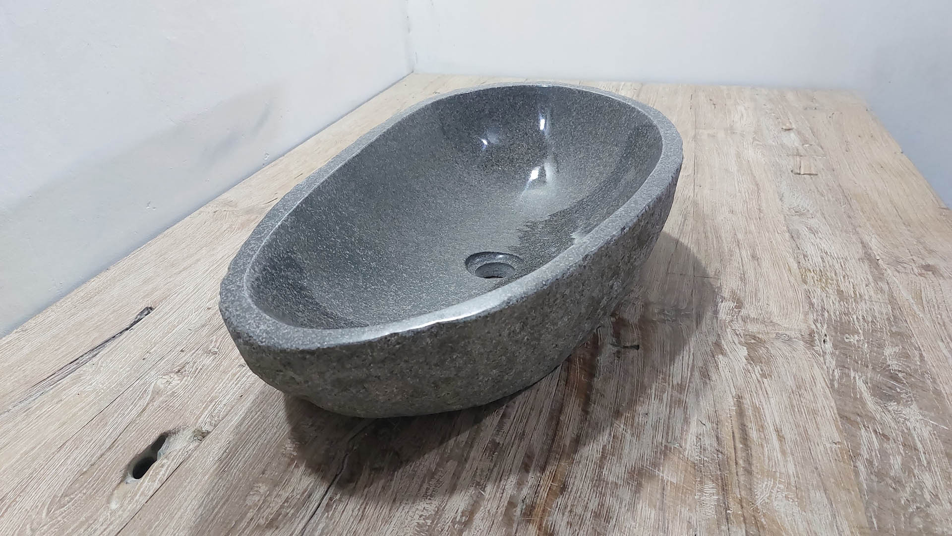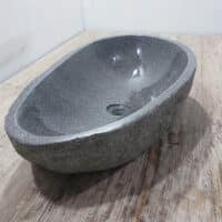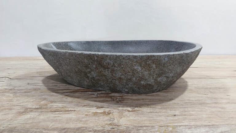 Middelgrote natuursteen waskom van Riviersteen. Deze rivierstenen waskom van is perfect voor kleine tot middelgrote badkamermeubels. Elke rivierstenen waskom wordt met de hand vervaardigd uit massief natuursteen. De binnenzijde van de kom wordt glad gepolijst voor een snelle waterafvoer en eenvoudig onderhoud, de buitenzijde blijft ruw en onbewerkt waardoor de kom zijn robuuste en natuurlijke karakter behoudt.