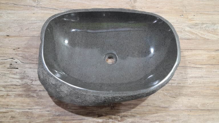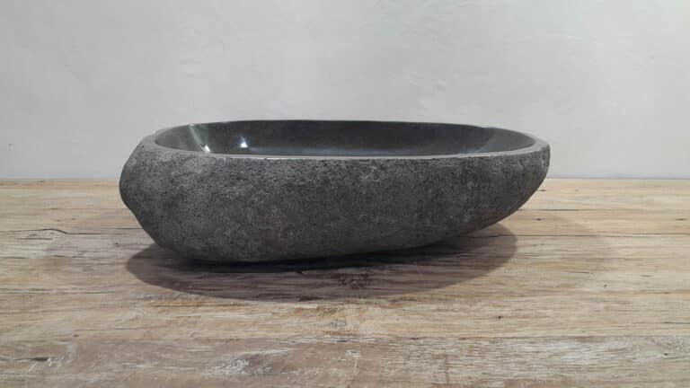 Middelgrote natuursteen waskom van Riviersteen. Deze rivierstenen waskom van is perfect voor kleine tot middelgrote badkamermeubels. Elke rivierstenen waskom wordt met de hand vervaardigd uit massief natuursteen. De binnenzijde van de kom wordt glad gepolijst voor een snelle waterafvoer en eenvoudig onderhoud, de buitenzijde blijft ruw en onbewerkt waardoor de kom zijn robuuste en natuurlijke karakter behoudt.