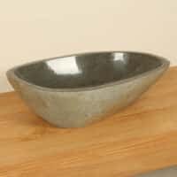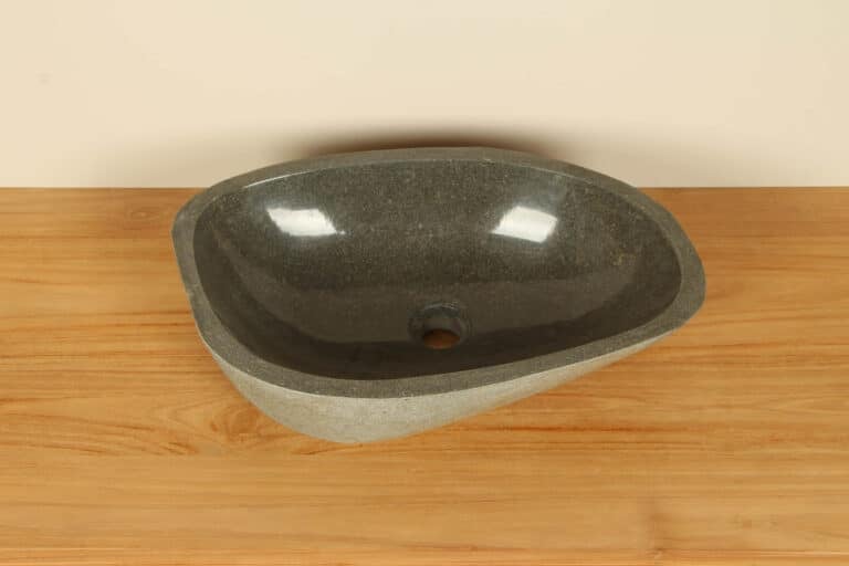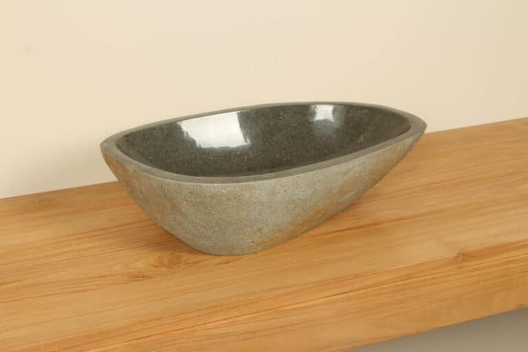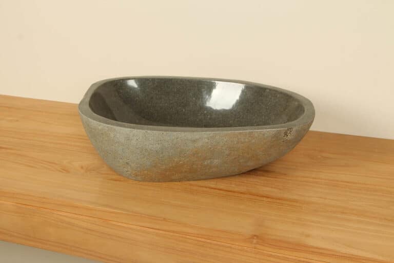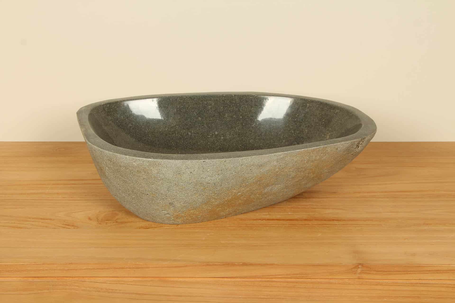 Middelgrote natuursteen waskom van Riviersteen. Deze rivierstenen waskom van is perfect voor kleine tot middelgrote badkamermeubels. Elke rivierstenen waskom wordt met de hand vervaardigd uit massief natuursteen. De binnenzijde van de kom wordt glad gepolijst voor een snelle waterafvoer en eenvoudig onderhoud, de buitenzijde blijft ruw en onbewerkt waardoor de kom zijn robuuste en natuurlijke karakter behoudt.