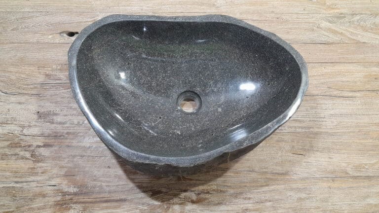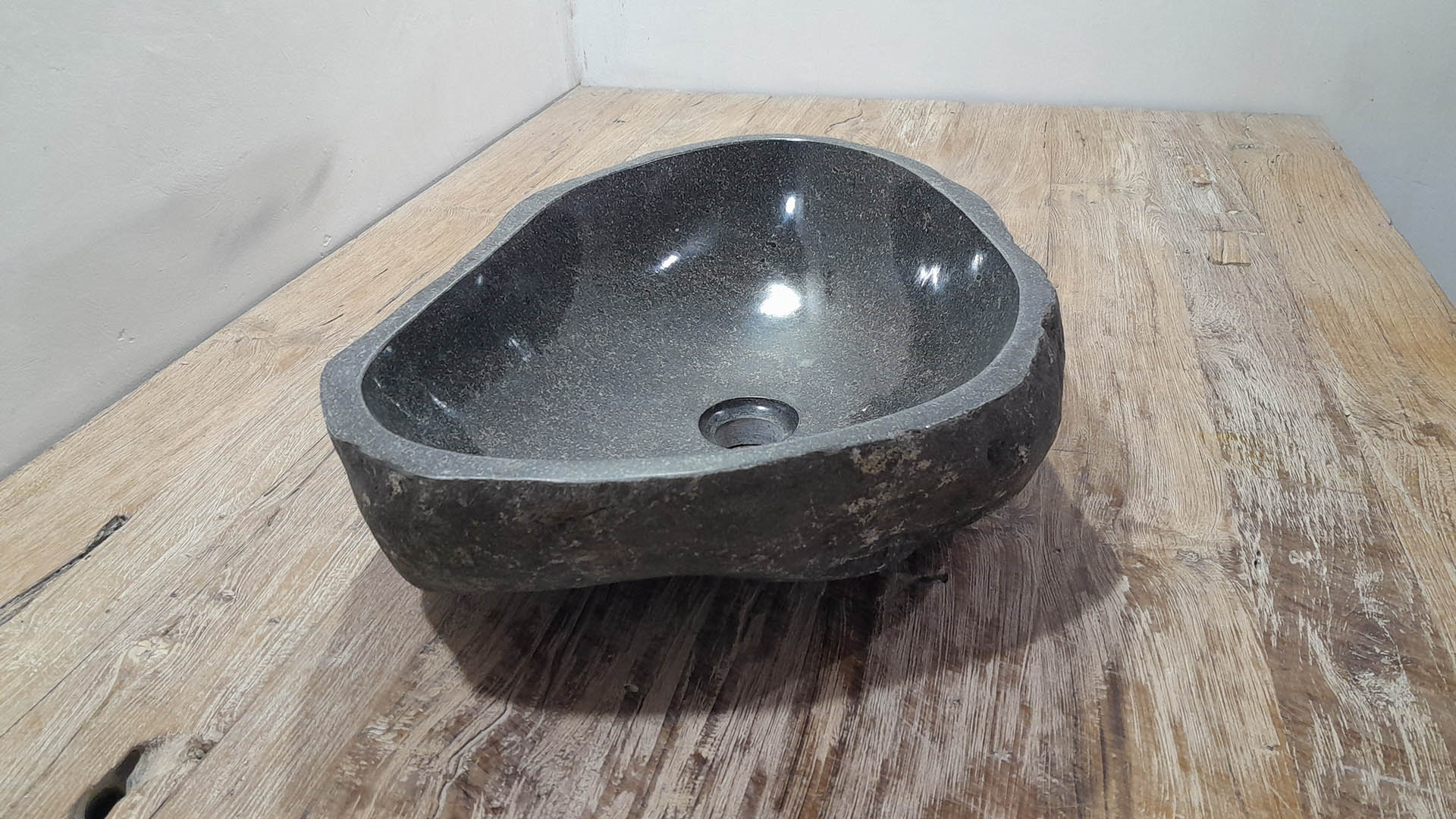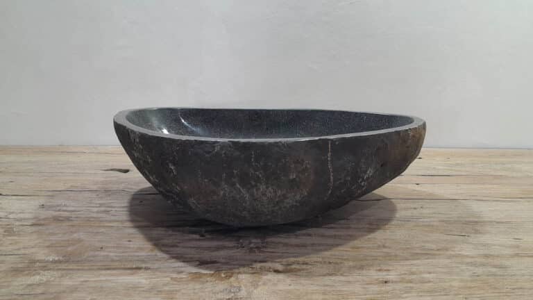 Middelgrote natuursteen waskom van Riviersteen. Deze rivierstenen waskom van is perfect voor kleine tot middelgrote badkamermeubels. Elke rivierstenen waskom wordt met de hand vervaardigd uit massief natuursteen. De binnenzijde van de kom wordt glad gepolijst voor een snelle waterafvoer en eenvoudig onderhoud, de buitenzijde blijft ruw en onbewerkt waardoor de kom zijn robuuste en natuurlijke karakter behoudt.