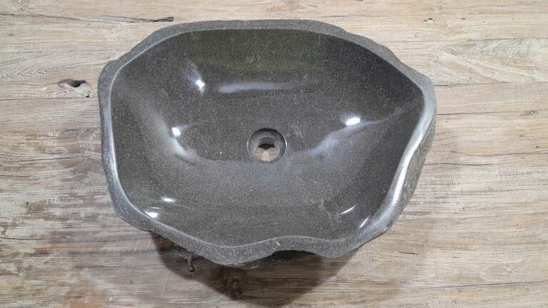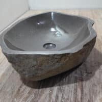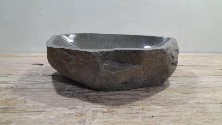 Middelgrote natuursteen waskom van Riviersteen. Deze rivierstenen waskom van is perfect voor kleine tot middelgrote badkamermeubels. Elke rivierstenen waskom wordt met de hand vervaardigd uit massief natuursteen. De binnenzijde van de kom wordt glad gepolijst voor een snelle waterafvoer en eenvoudig onderhoud, de buitenzijde blijft ruw en onbewerkt waardoor de kom zijn robuuste en natuurlijke karakter behoudt.