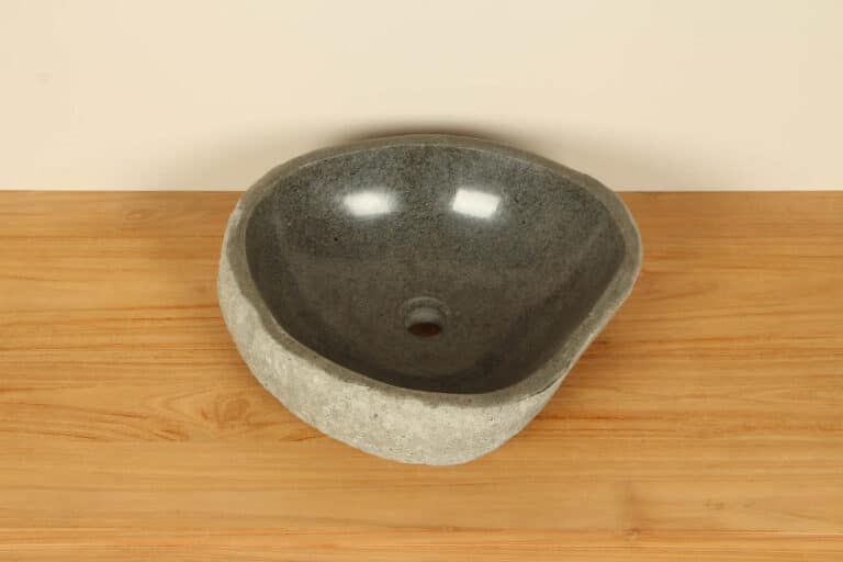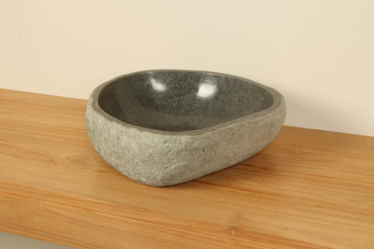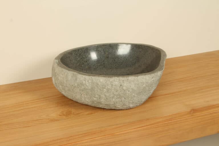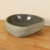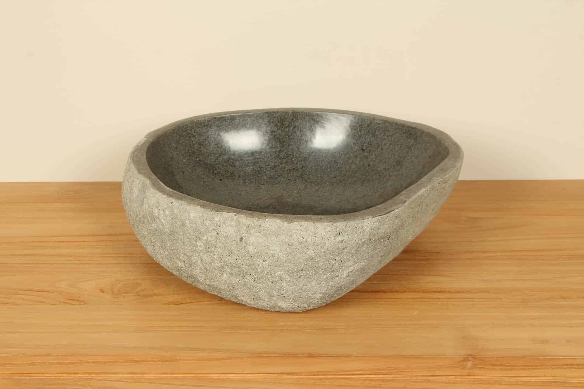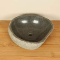 Middelgrote natuursteen waskom van Riviersteen. Deze rivierstenen waskom van is perfect voor kleine tot middelgrote badkamermeubels. Elke rivierstenen waskom wordt met de hand vervaardigd uit massief natuursteen. De binnenzijde van de kom wordt glad gepolijst voor een snelle waterafvoer en eenvoudig onderhoud, de buitenzijde blijft ruw en onbewerkt waardoor de kom zijn robuuste en natuurlijke karakter behoudt.