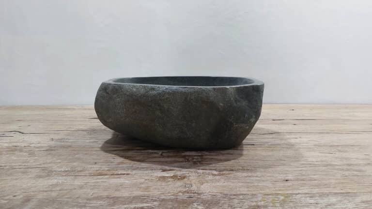 Middelgrote natuursteen waskom van Riviersteen. Deze rivierstenen waskom van is perfect voor kleine tot middelgrote badkamermeubels. Elke rivierstenen waskom wordt met de hand vervaardigd uit massief natuursteen. De binnenzijde van de kom wordt glad gepolijst voor een snelle waterafvoer en eenvoudig onderhoud, de buitenzijde blijft ruw en onbewerkt waardoor de kom zijn robuuste en natuurlijke karakter behoudt.