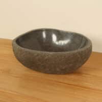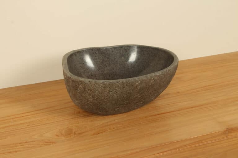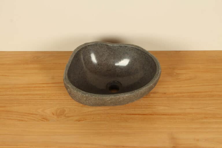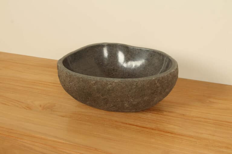 Middelgrote natuursteen waskom van Riviersteen. Deze rivierstenen waskom van is perfect voor kleine tot middelgrote badkamermeubels. Elke rivierstenen waskom wordt met de hand vervaardigd uit massief natuursteen. De binnenzijde van de kom wordt glad gepolijst voor een snelle waterafvoer en eenvoudig onderhoud, de buitenzijde blijft ruw en onbewerkt waardoor de kom zijn robuuste en natuurlijke karakter behoudt.