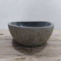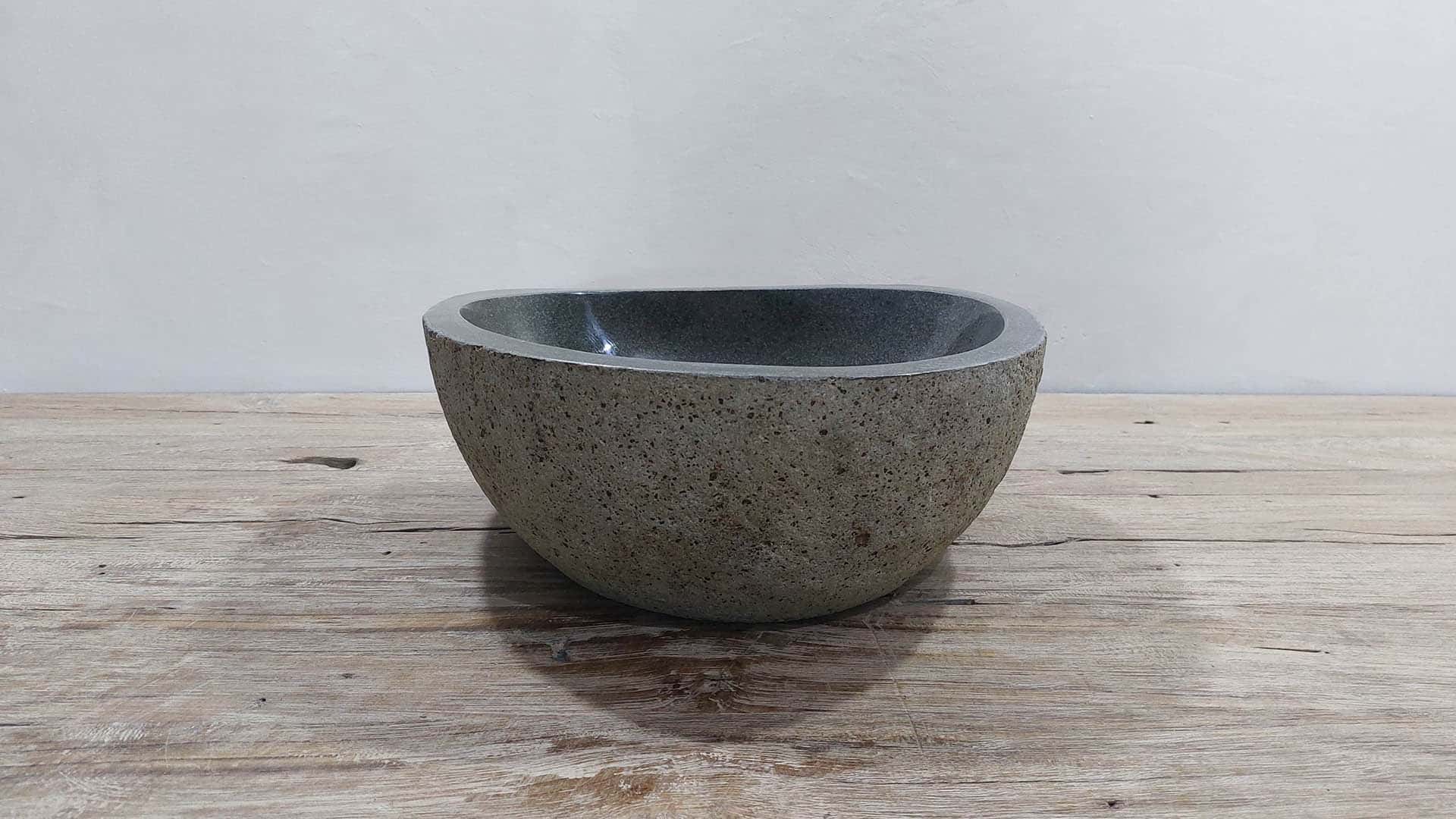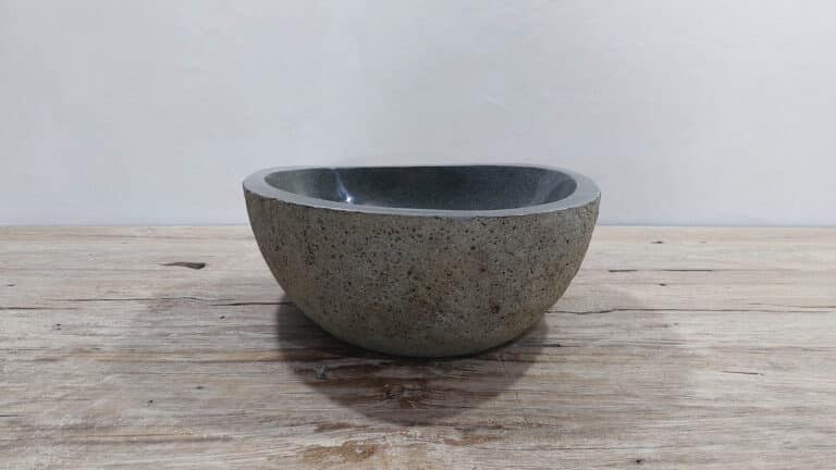 Middelgrote natuursteen waskom van Riviersteen. Deze rivierstenen waskom van is perfect voor kleine tot middelgrote badkamermeubels. Elke rivierstenen waskom wordt met de hand vervaardigd uit massief natuursteen. De binnenzijde van de kom wordt glad gepolijst voor een snelle waterafvoer en eenvoudig onderhoud, de buitenzijde blijft ruw en onbewerkt waardoor de kom zijn robuuste en natuurlijke karakter behoudt.