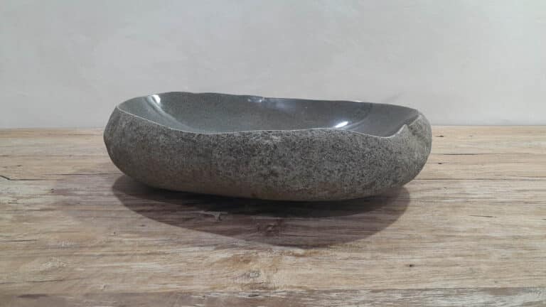 Middelgrote natuursteen waskom van Riviersteen. Deze rivierstenen waskom van is perfect voor kleine tot middelgrote badkamermeubels. Elke rivierstenen waskom wordt met de hand vervaardigd uit massief natuursteen. De binnenzijde van de kom wordt glad gepolijst voor een snelle waterafvoer en eenvoudig onderhoud, de buitenzijde blijft ruw en onbewerkt waardoor de kom zijn robuuste en natuurlijke karakter behoudt.