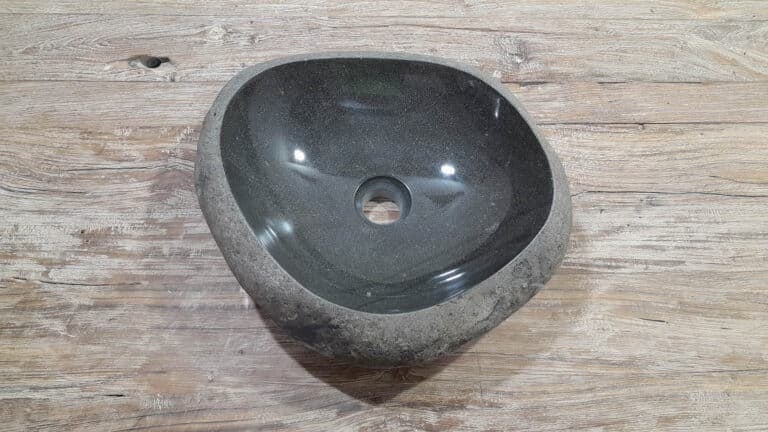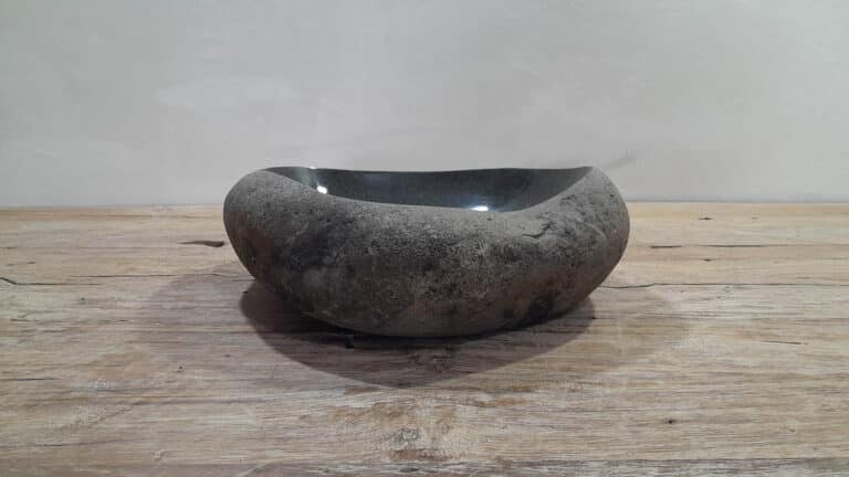 Middelgrote natuursteen waskom van Riviersteen. Deze rivierstenen waskom van is perfect voor kleine tot middelgrote badkamermeubels. Elke rivierstenen waskom wordt met de hand vervaardigd uit massief natuursteen. De binnenzijde van de kom wordt glad gepolijst voor een snelle waterafvoer en eenvoudig onderhoud, de buitenzijde blijft ruw en onbewerkt waardoor de kom zijn robuuste en natuurlijke karakter behoudt.