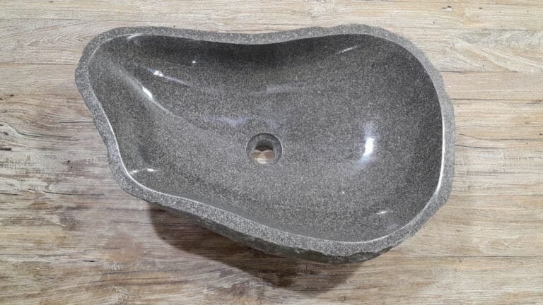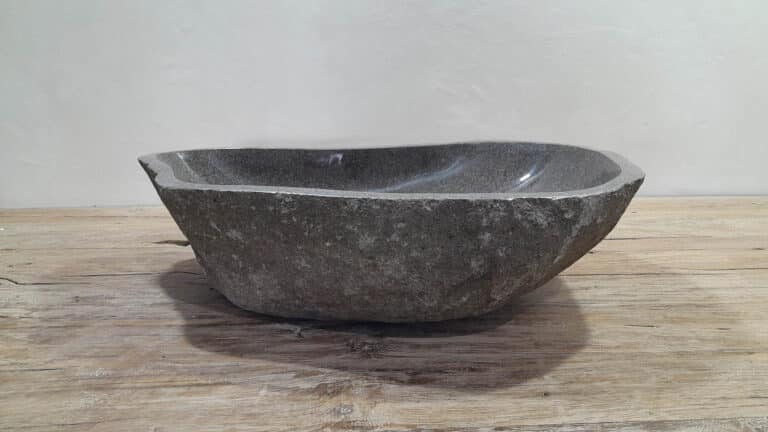 Middelgrote natuursteen waskom van Riviersteen. Deze rivierstenen waskom van is perfect voor kleine tot middelgrote badkamermeubels. Elke rivierstenen waskom wordt met de hand vervaardigd uit massief natuursteen. De binnenzijde van de kom wordt glad gepolijst voor een snelle waterafvoer en eenvoudig onderhoud, de buitenzijde blijft ruw en onbewerkt waardoor de kom zijn robuuste en natuurlijke karakter behoudt.